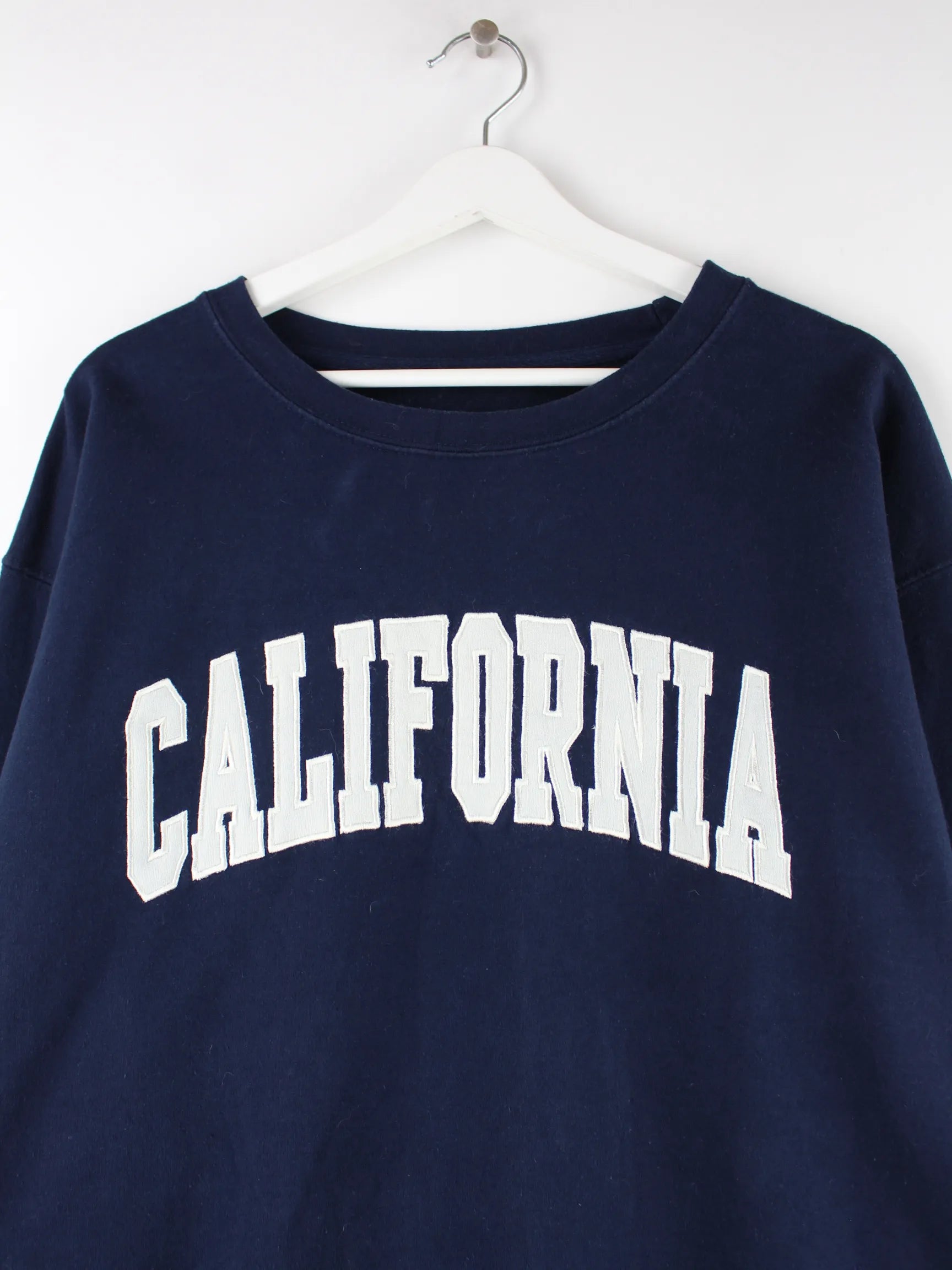 Vintage Sweater in Größe XL. Er ist aus einer Baumwollmischung gemacht und in Blau zu bekommen.