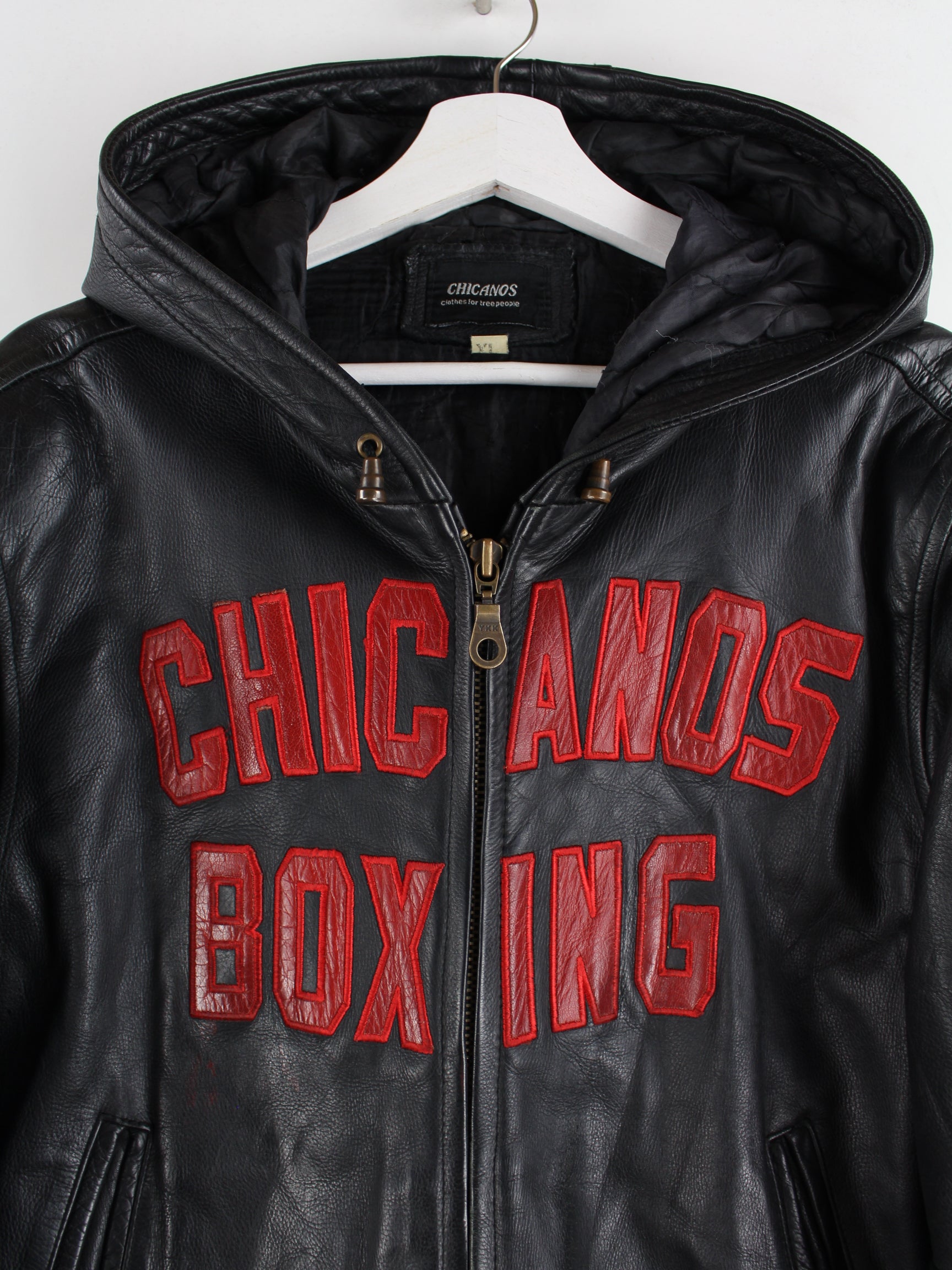 Vintage Chicanos Boxing Leder College Jacke Schwarz M