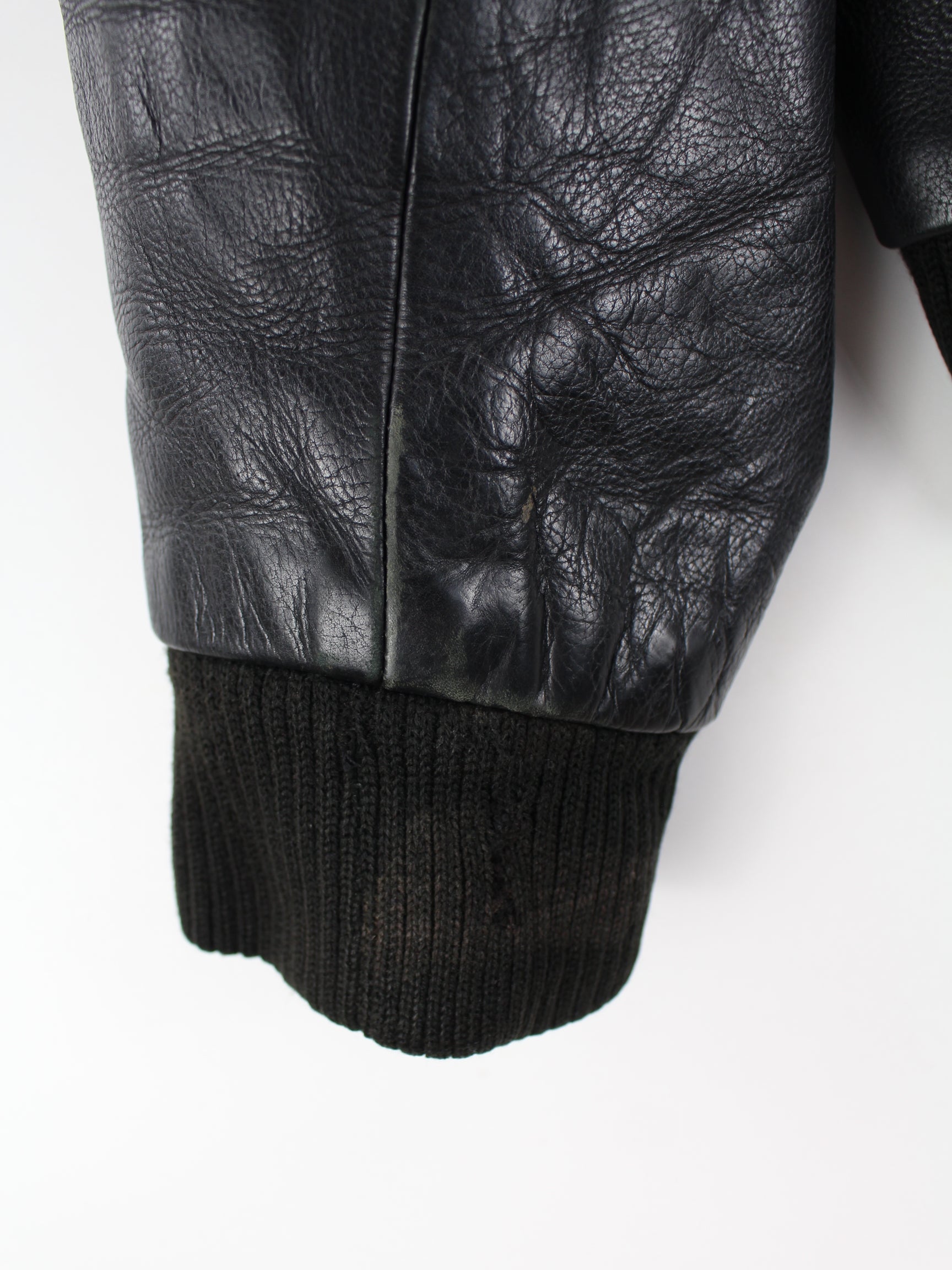 Schwarze Vintage Jacke in Größe M. Sie ist aus Leder produziert und in gutem Zustand vorrätig.