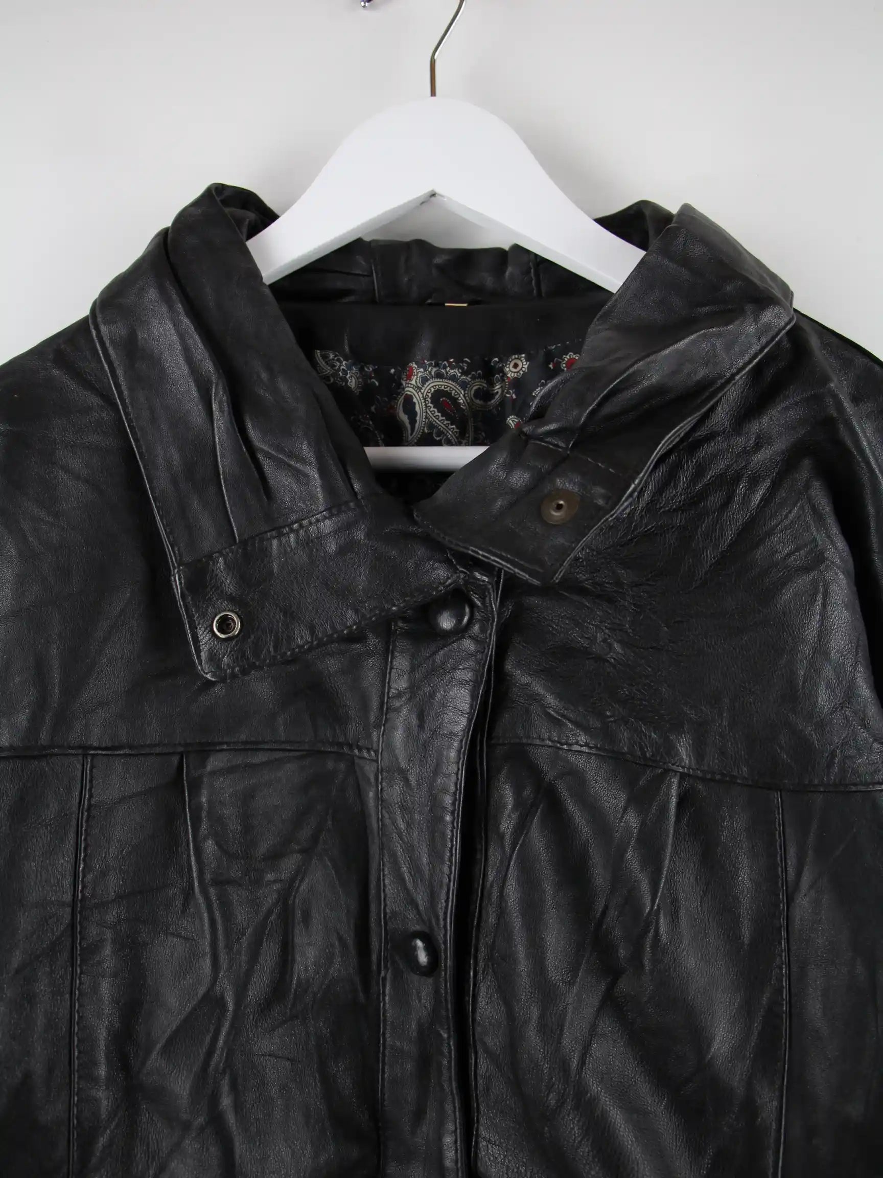 Vintage Jacke in Größe L aus den 80'ern. Sie ist aus Leder gefertigt und in Schwarz zu bekommen.