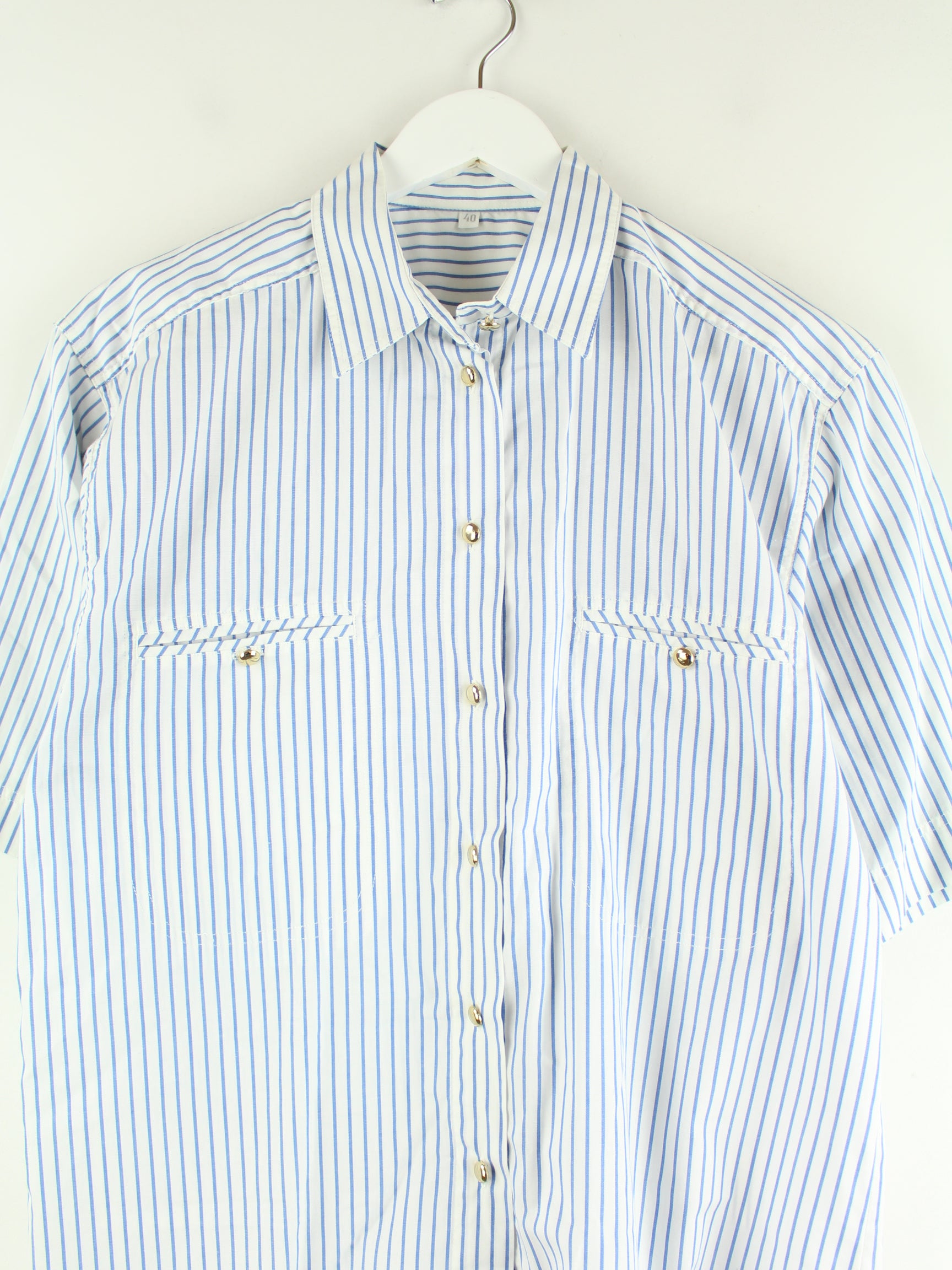 Vintage Damen 90s Gestreiftes Kurzarm Hemd Weiß S