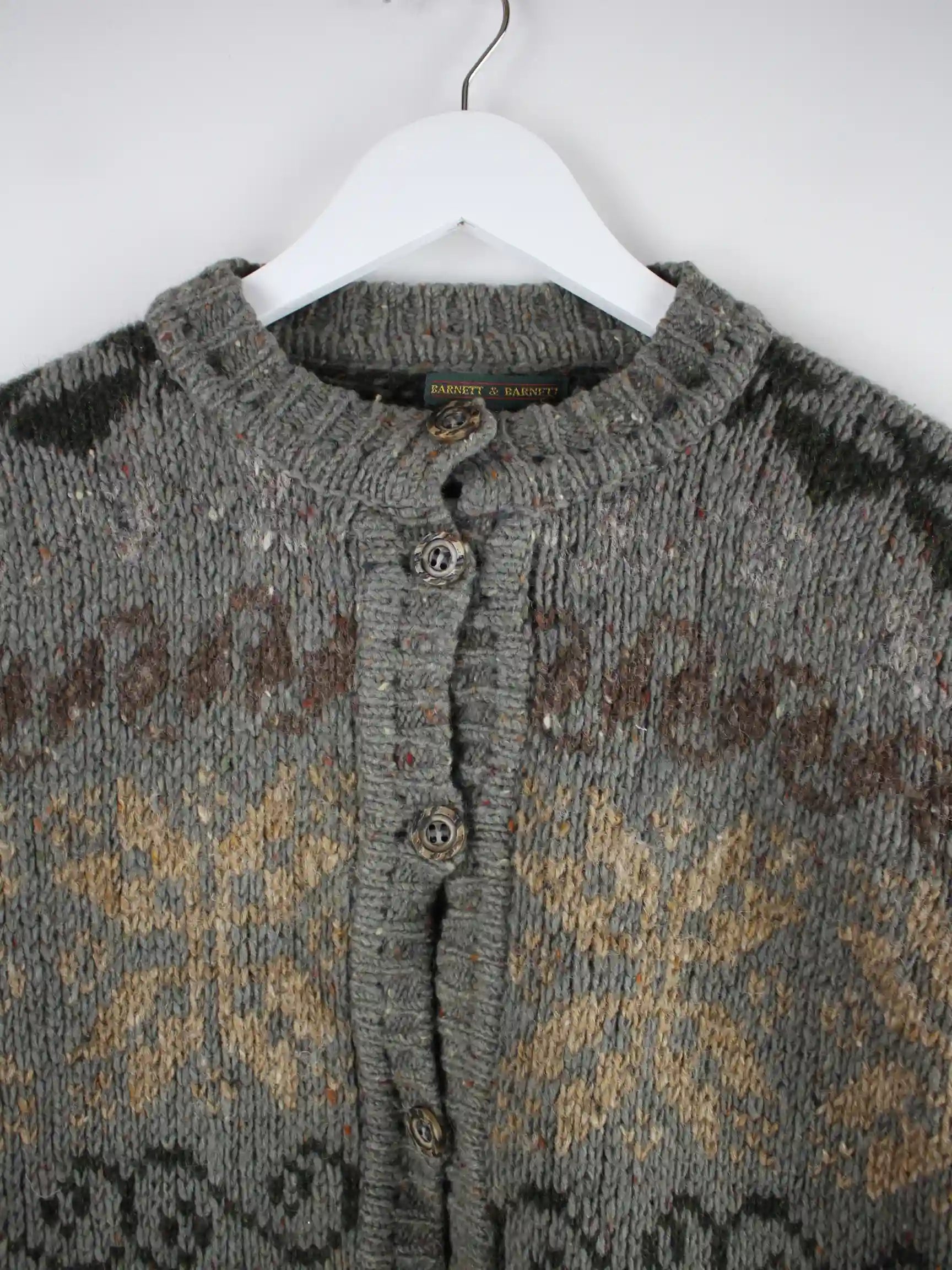 Vintage Strickjacke in Größe XL aus den 90'ern. Sie ist aus Wolle gefertigt und in Grau im Bestand.