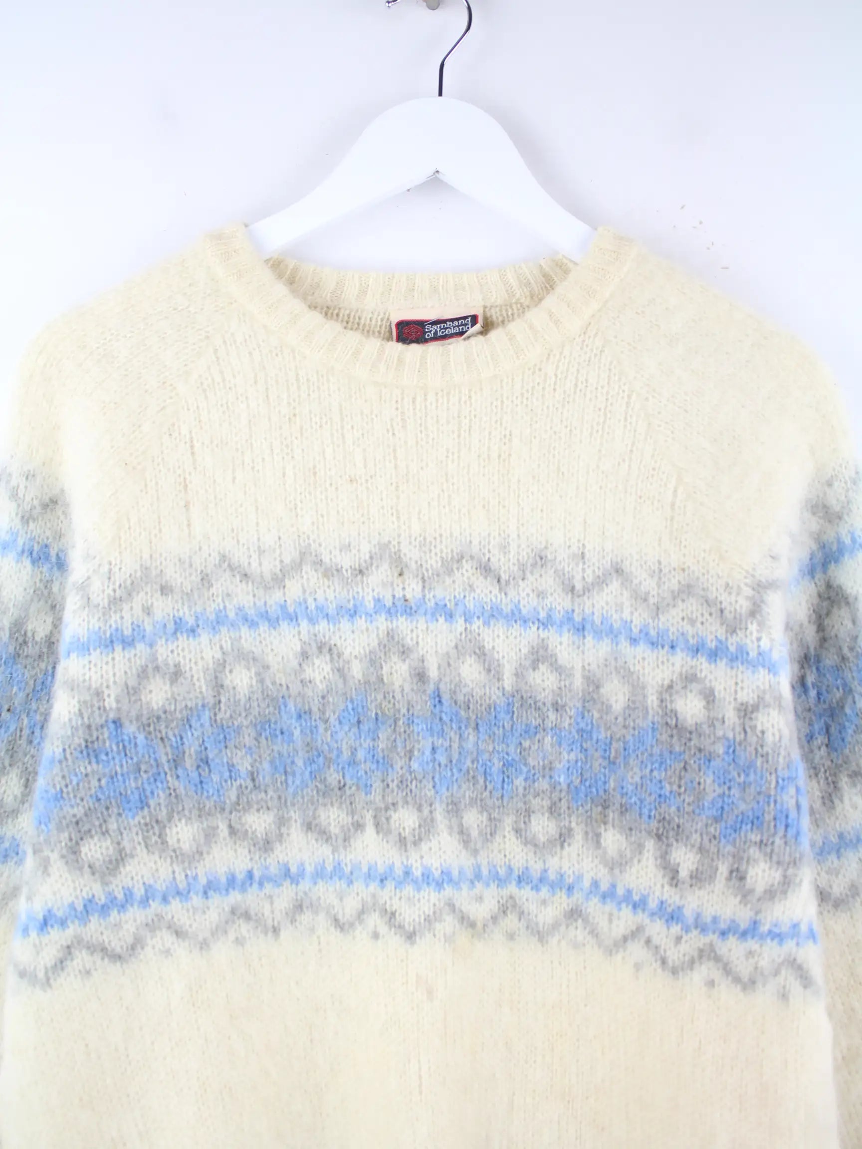 Beigefarbener Vintage Pullover aus den 90'ern in Größe L. Er ist aus Wolle gefertigt und in gutem Zustand auf Lager.
