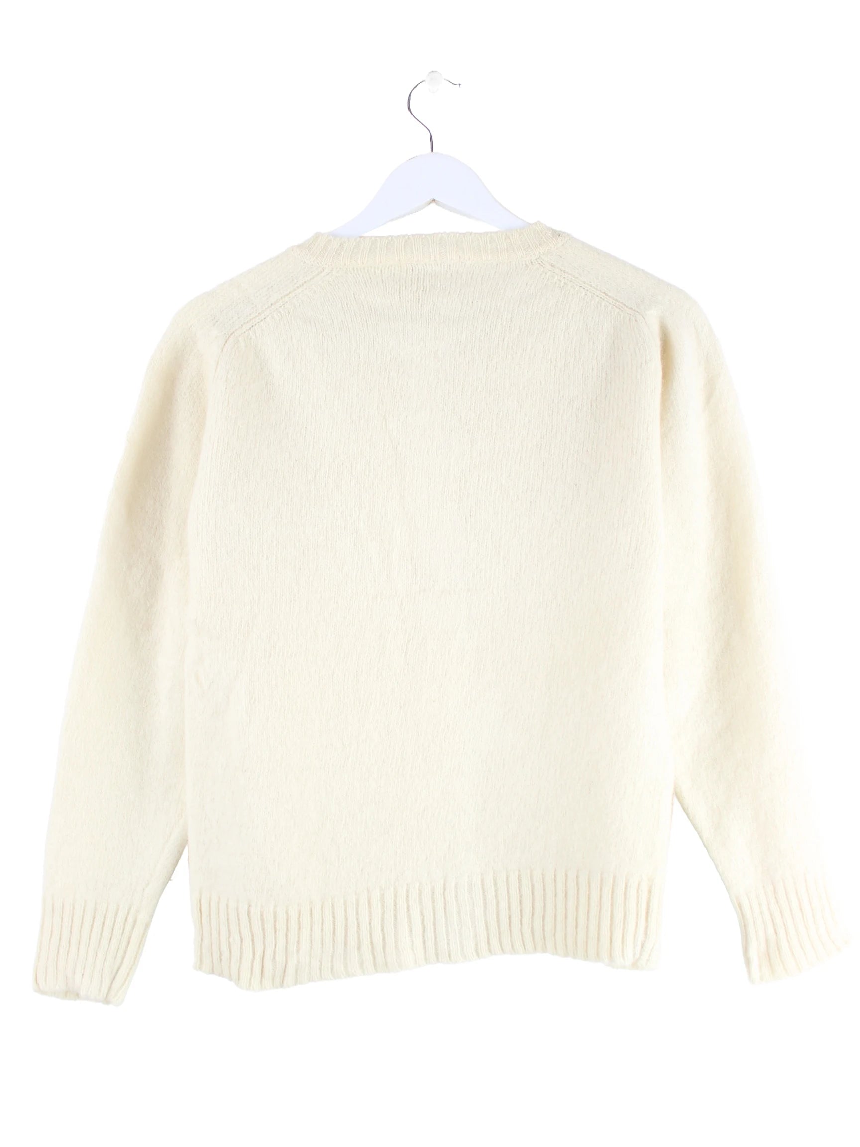 Vintage Strickjacke in Größe S aus den 90'ern. Sie ist aus Wolle angefertigt und in Beige in Stock.
