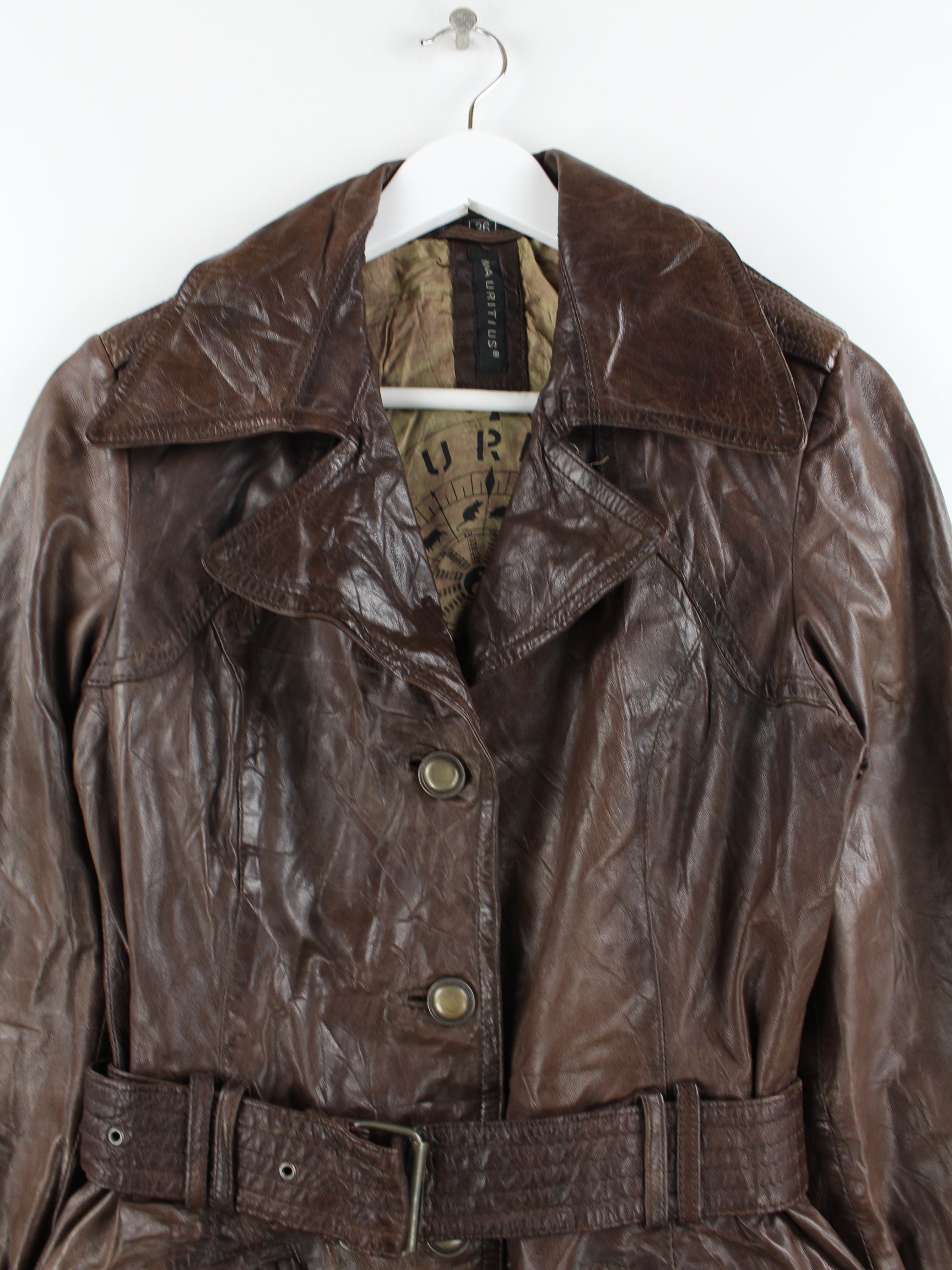 Vintage Damen Leder Mantel Braun L