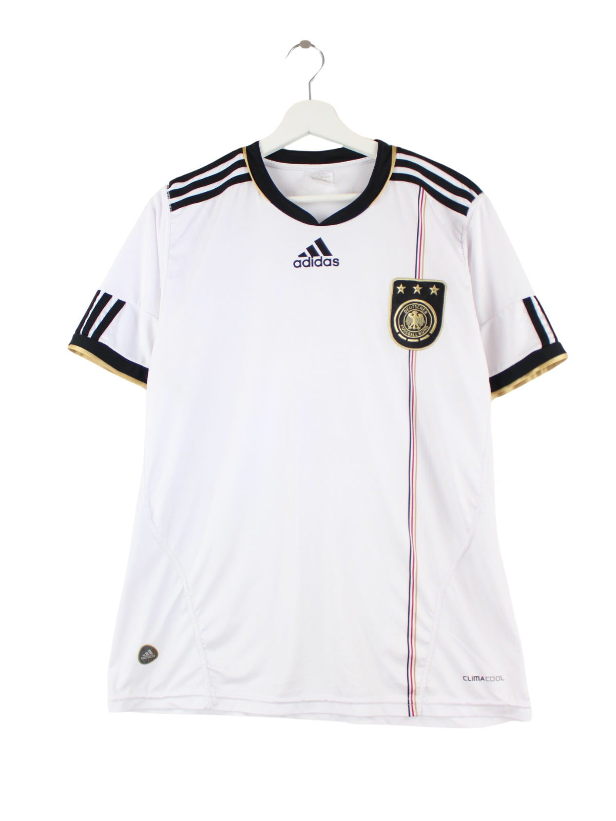 Weißes Vintage Trikot in Größe M. Es ist aus Synthetik gefertigt und in sehr gutem Zustand vorrätig.