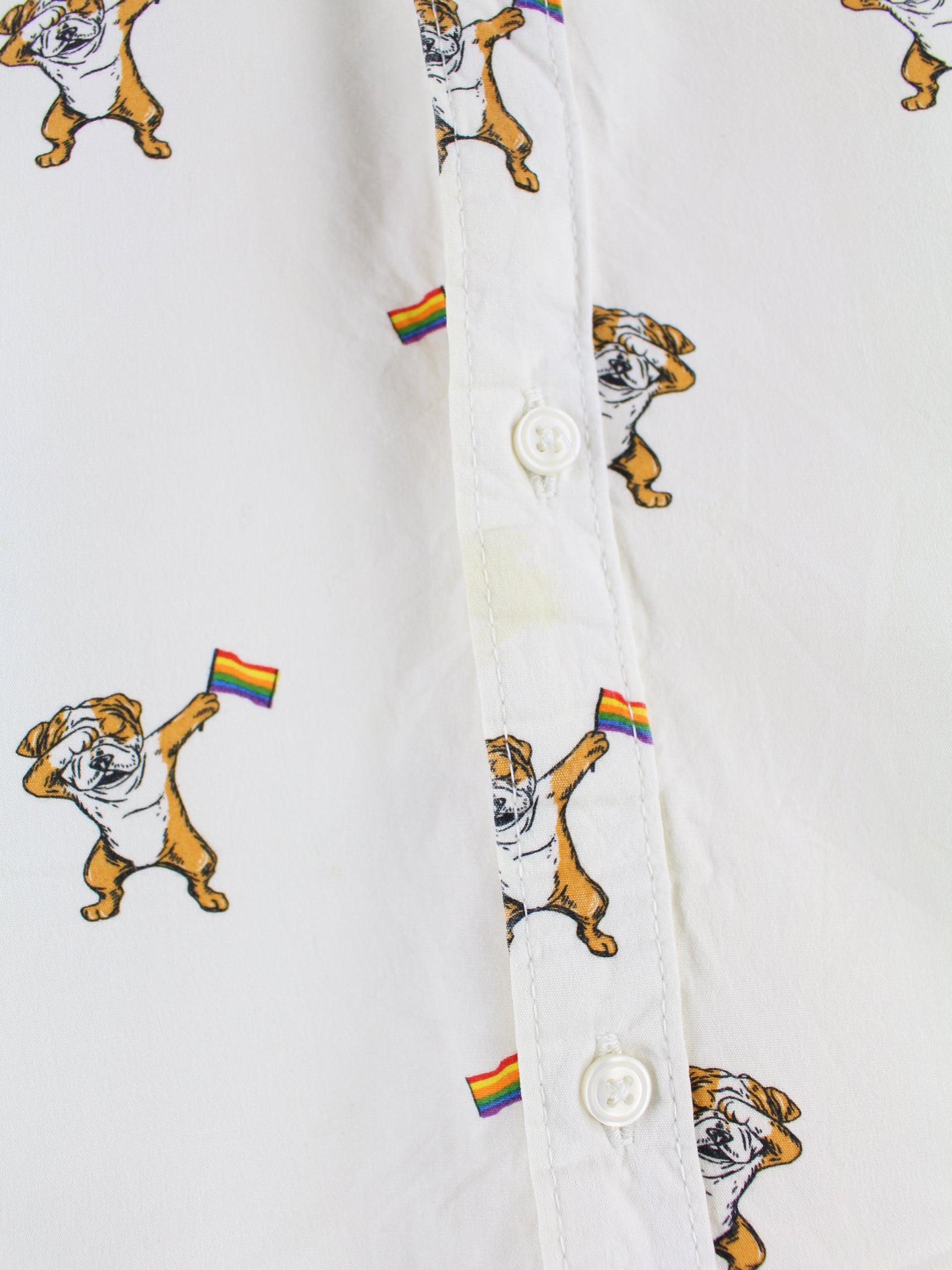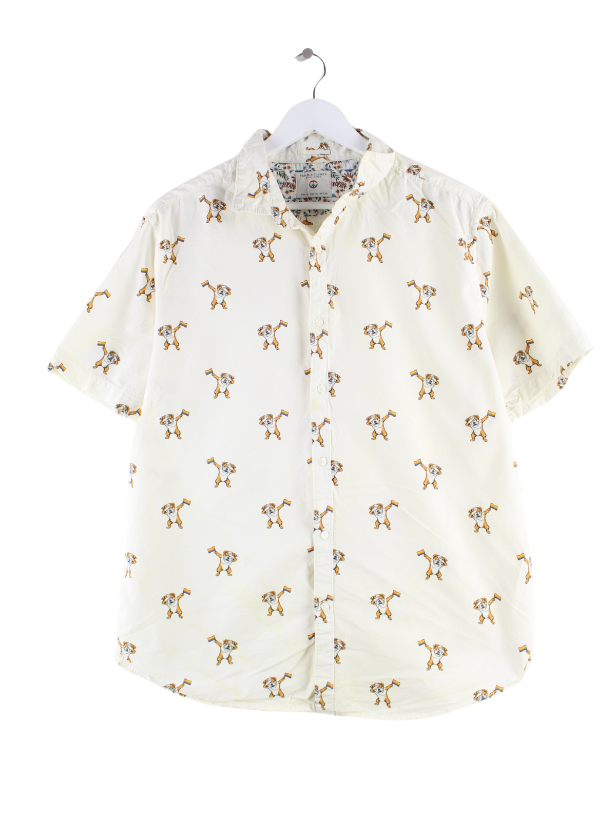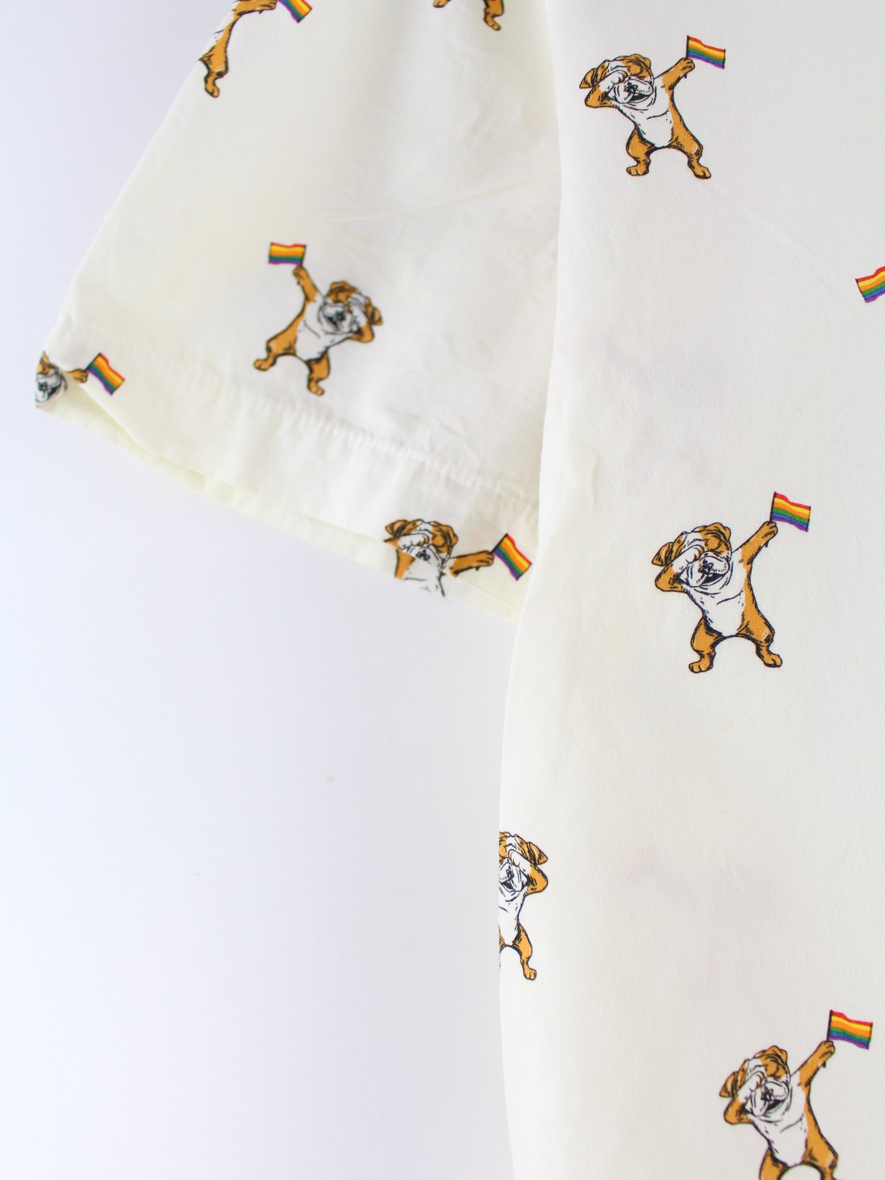 Vintage Dog Rainbow Pattern Kurzarm Hemd Beige XL