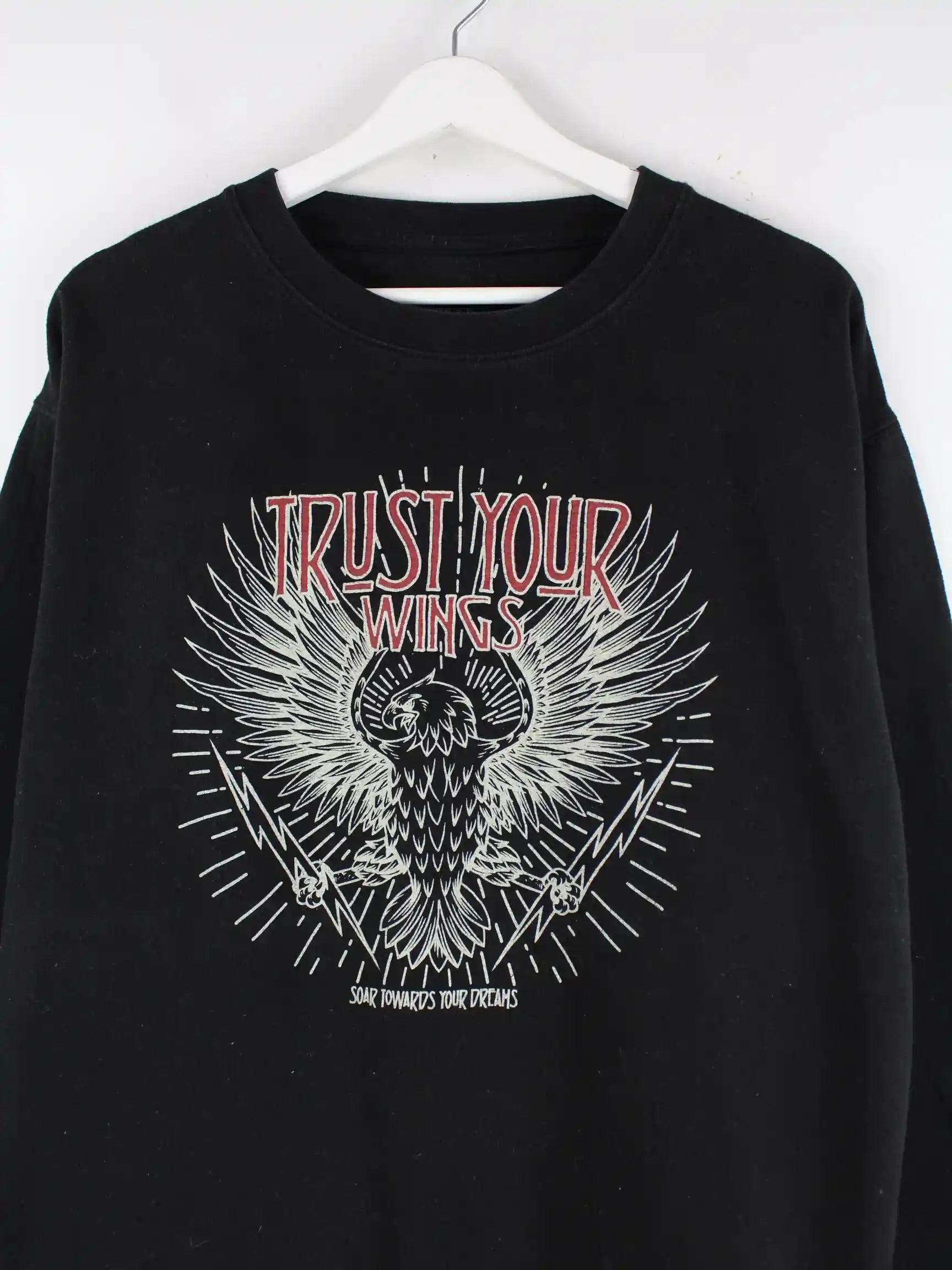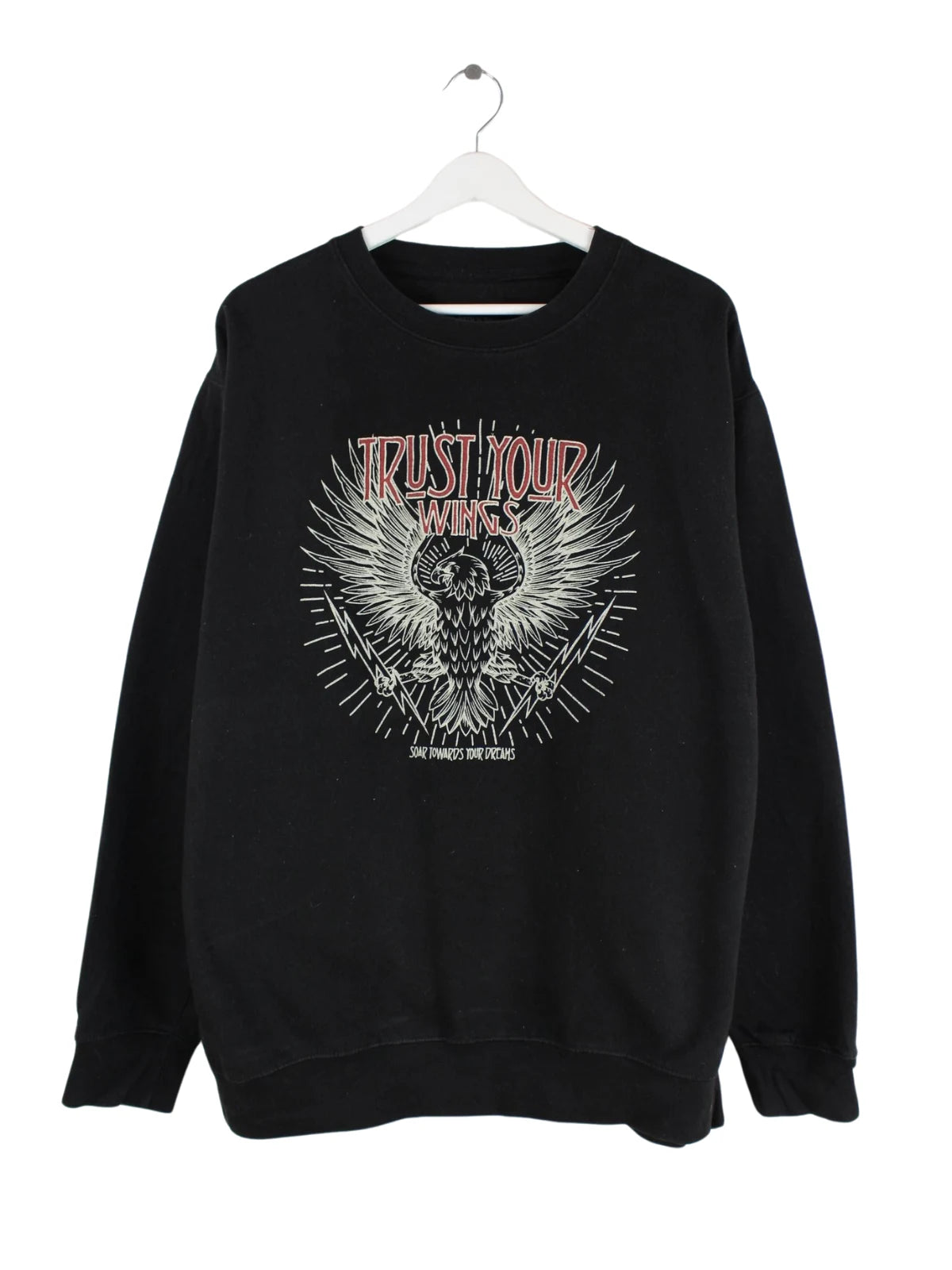 Vintage Sweater in Größe XL. Er ist aus einer Baumwollmischung gemacht und in Schwarz in Stock. Mit schickem Eagle Print.