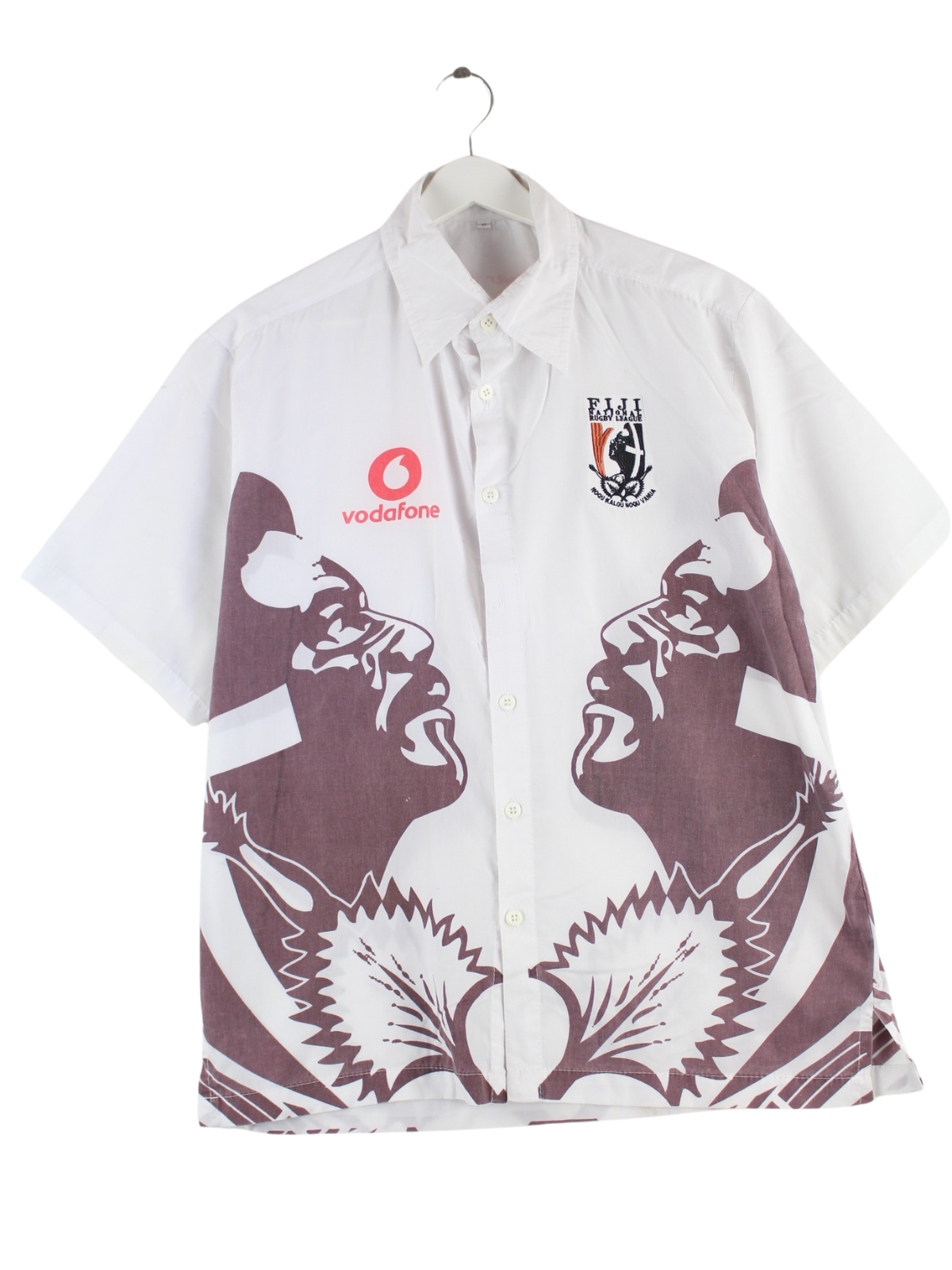 Vintage Fiji Rugby Print Kurzarm Hawaii Hemd Weiß S