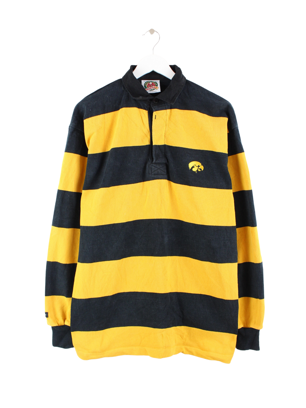 Vintage IOWA Hawkeyes Langarm Polo Gelb / Schwarz XL