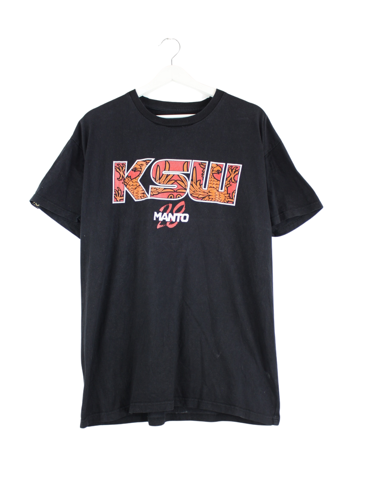 Schwarzes Vintage T-Shirt in Größe XL. Es ist aus Baumwolle gefertigt und in gutem Zustand in Stock. Mit seltenem KSW Print.