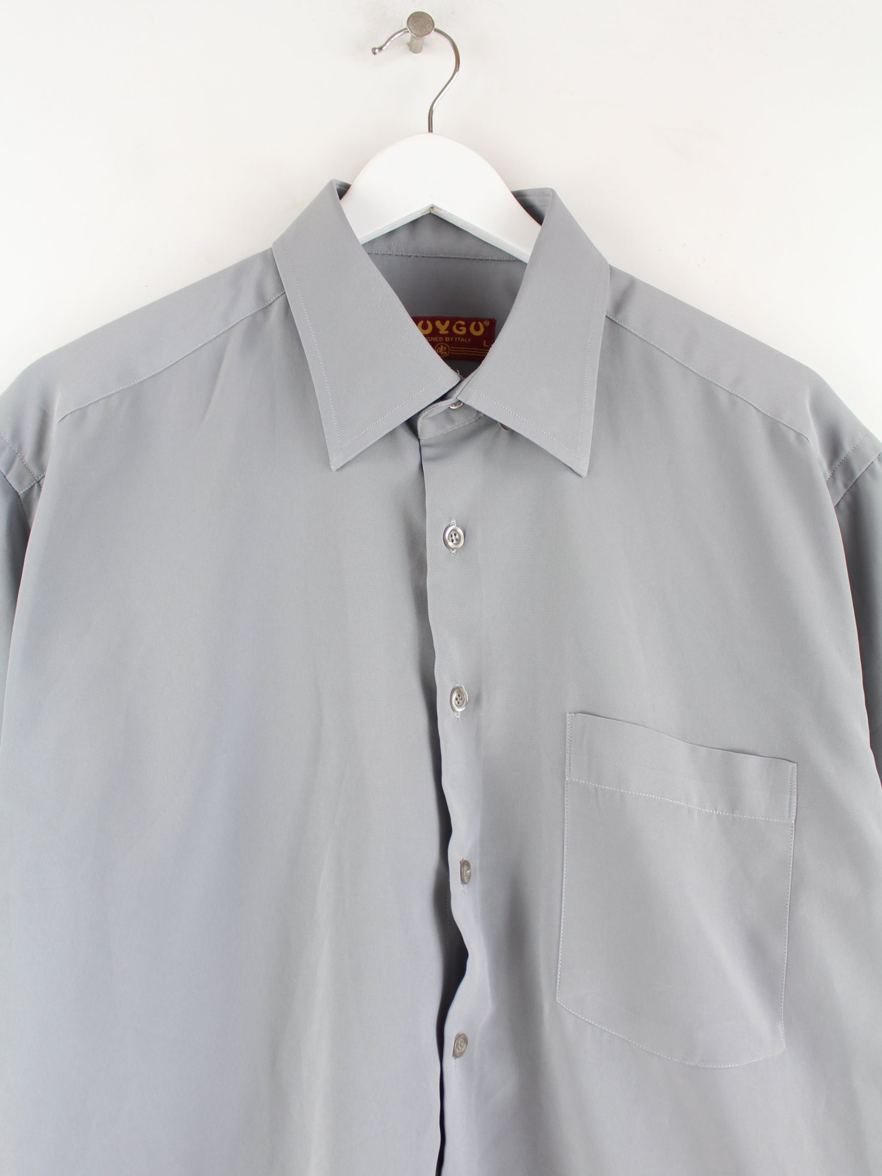 Vintage Freizeit Hemd in Größe L. Es ist aus Baumwolle angefertigt und in Grau im Bestand.