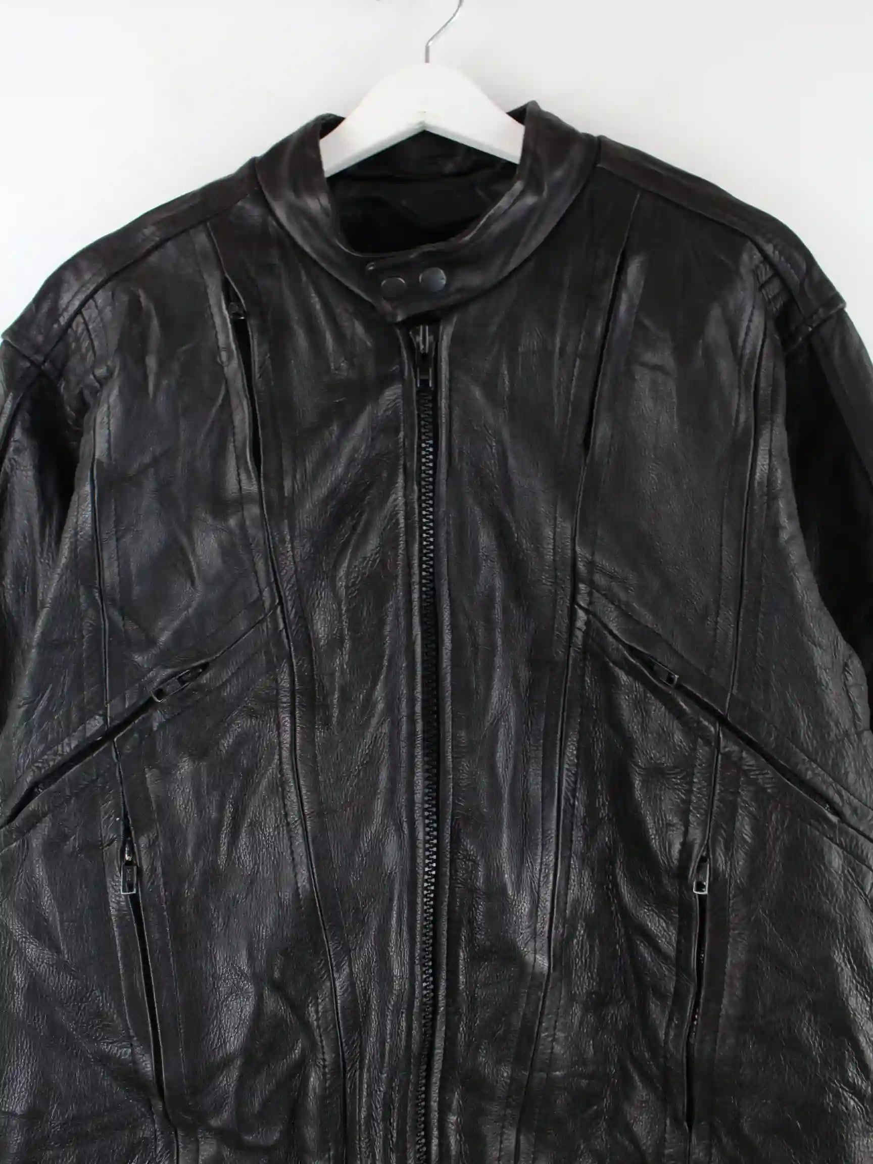 Vintage Leder Biker Jacke Schwarz M