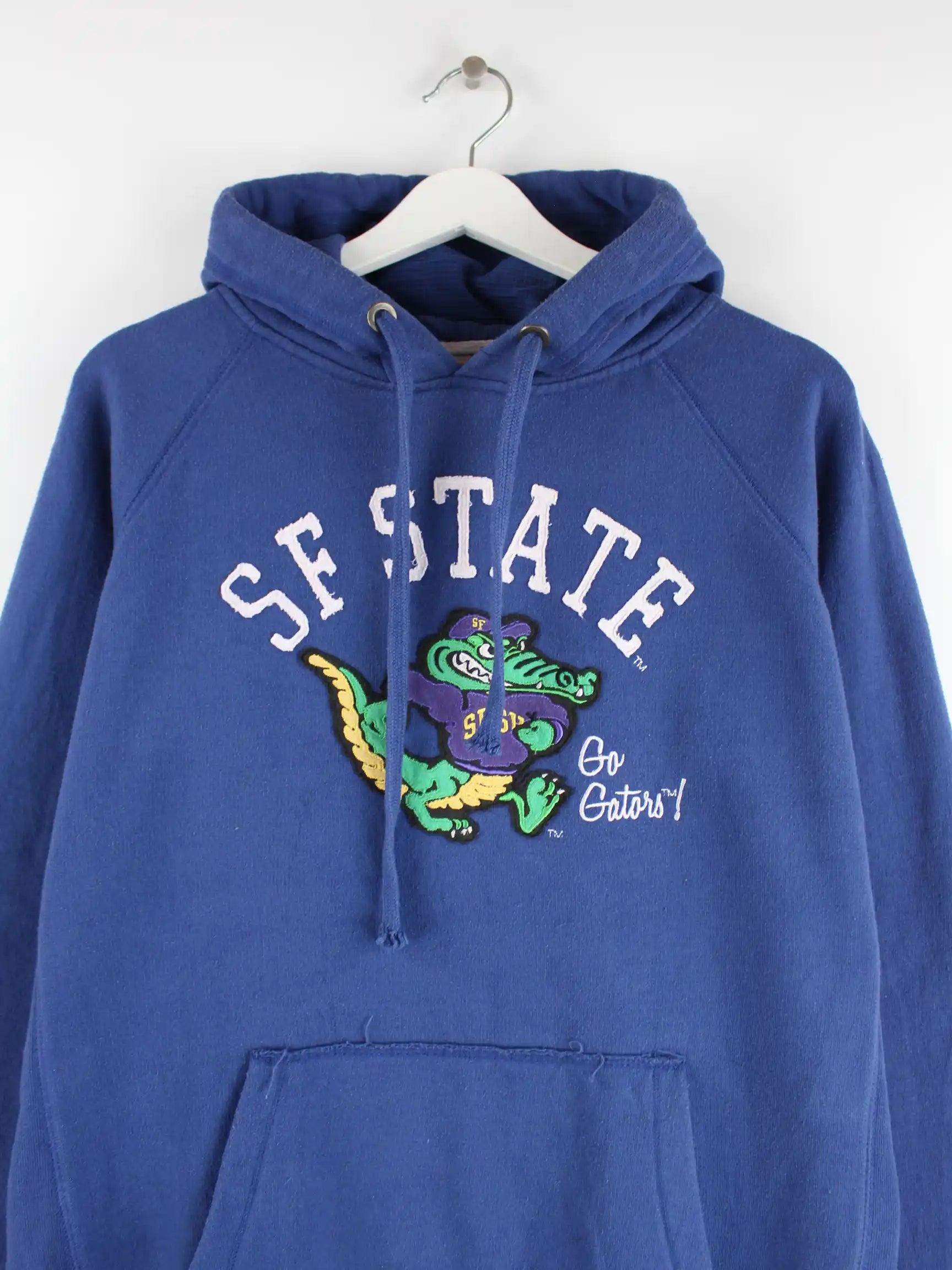Vintage Hoodie in Größe XL. Er ist aus einer Baumwollmischung produziert und in Blau zu haben.