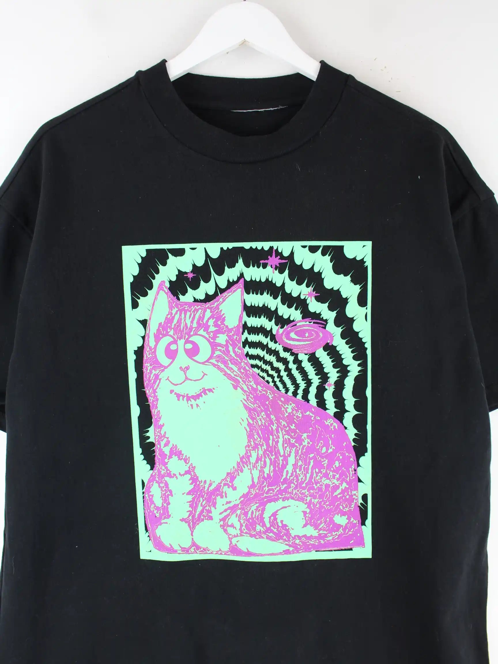 Vintage Space Cat Print Heavy T-Shirt Schwarz S