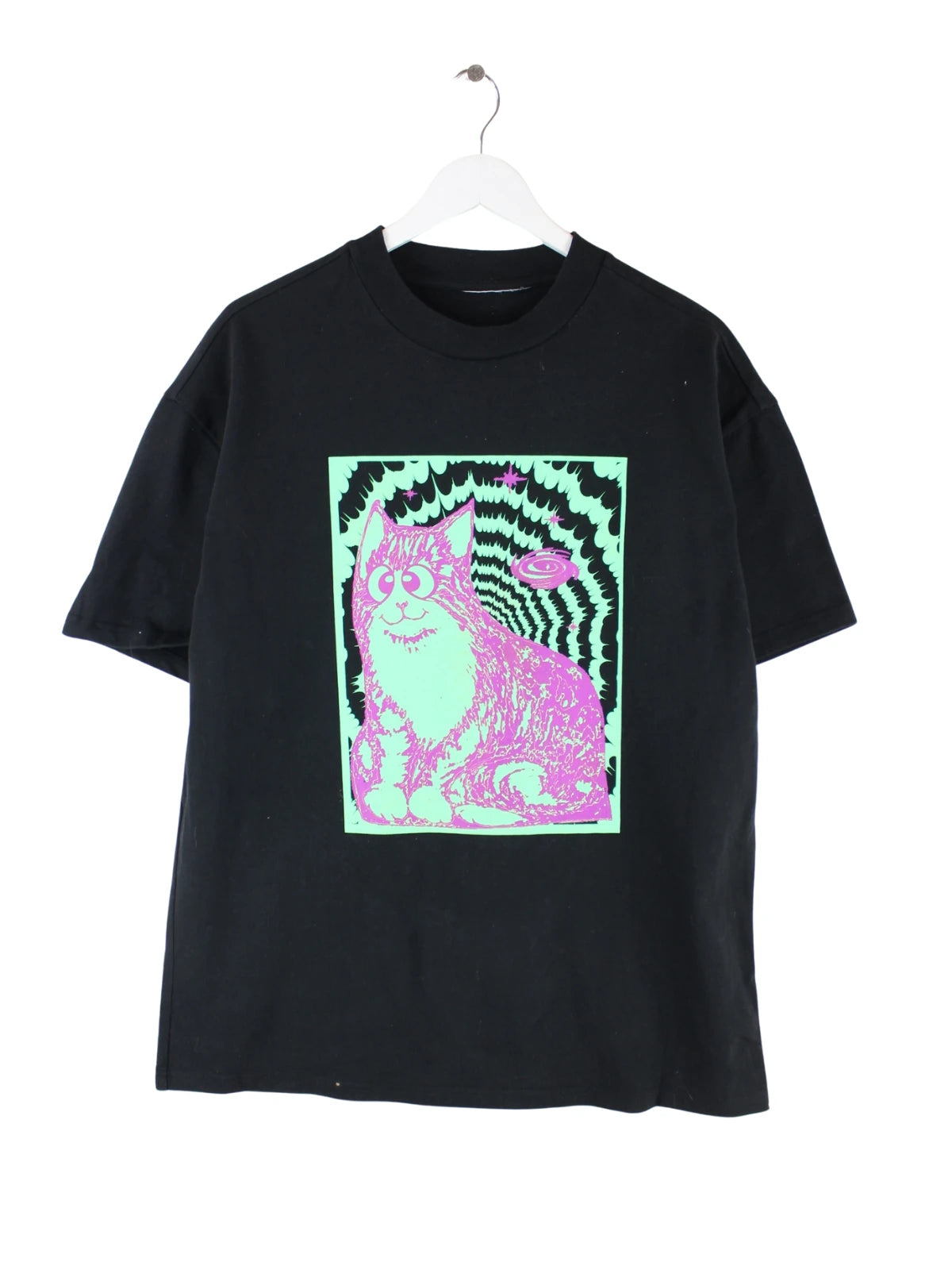 Schwarzes Vintage T-Shirt in Größe S. Es ist aus Baumwolle gefertigt und in sehr gutem Zustand in Stock. Mit schickem Cat Print.