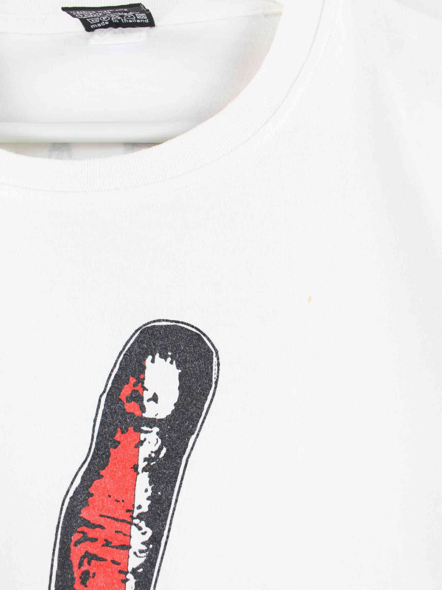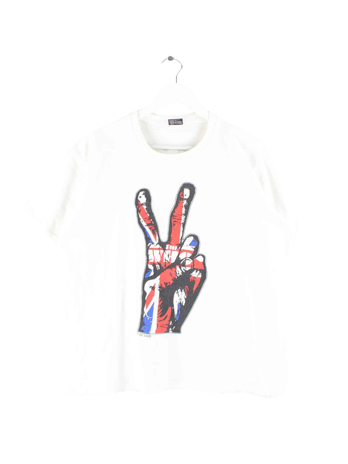 Vintage T-Shirt in Größe L. Es ist aus Baumwolle und in Weiß bei uns zu bekommen.