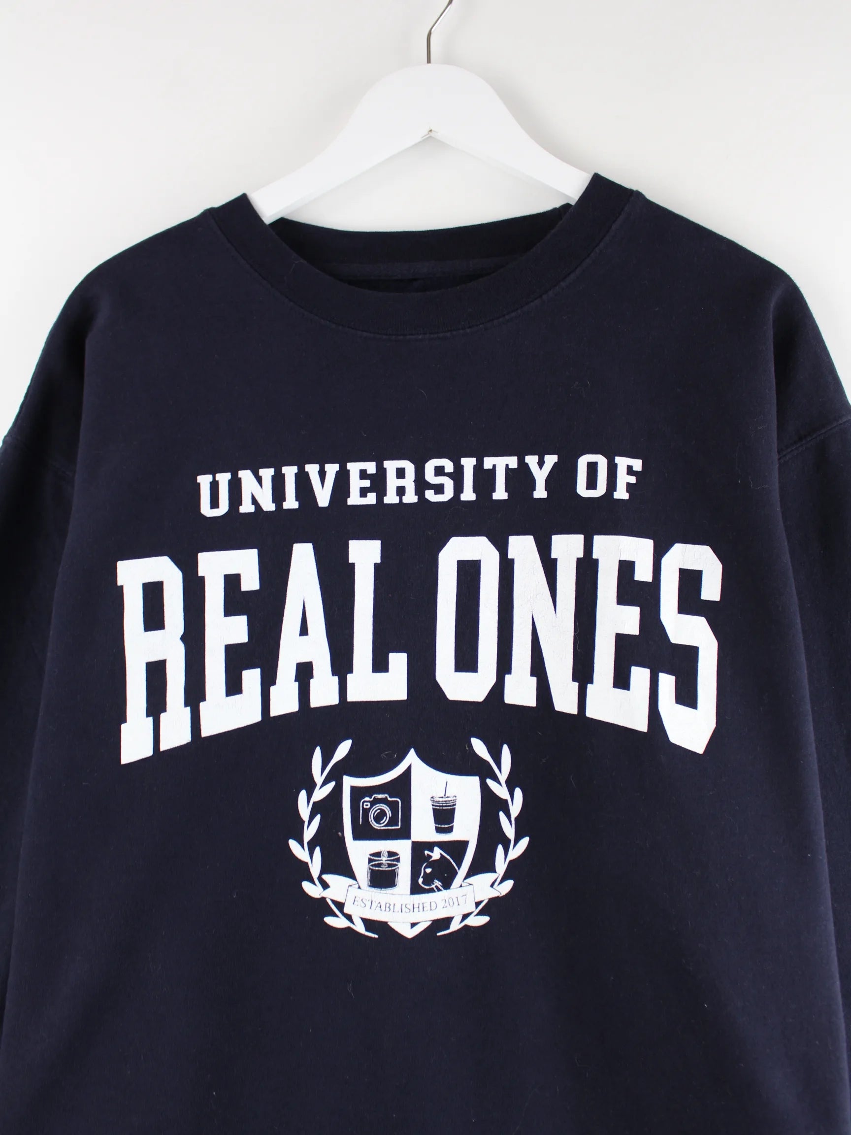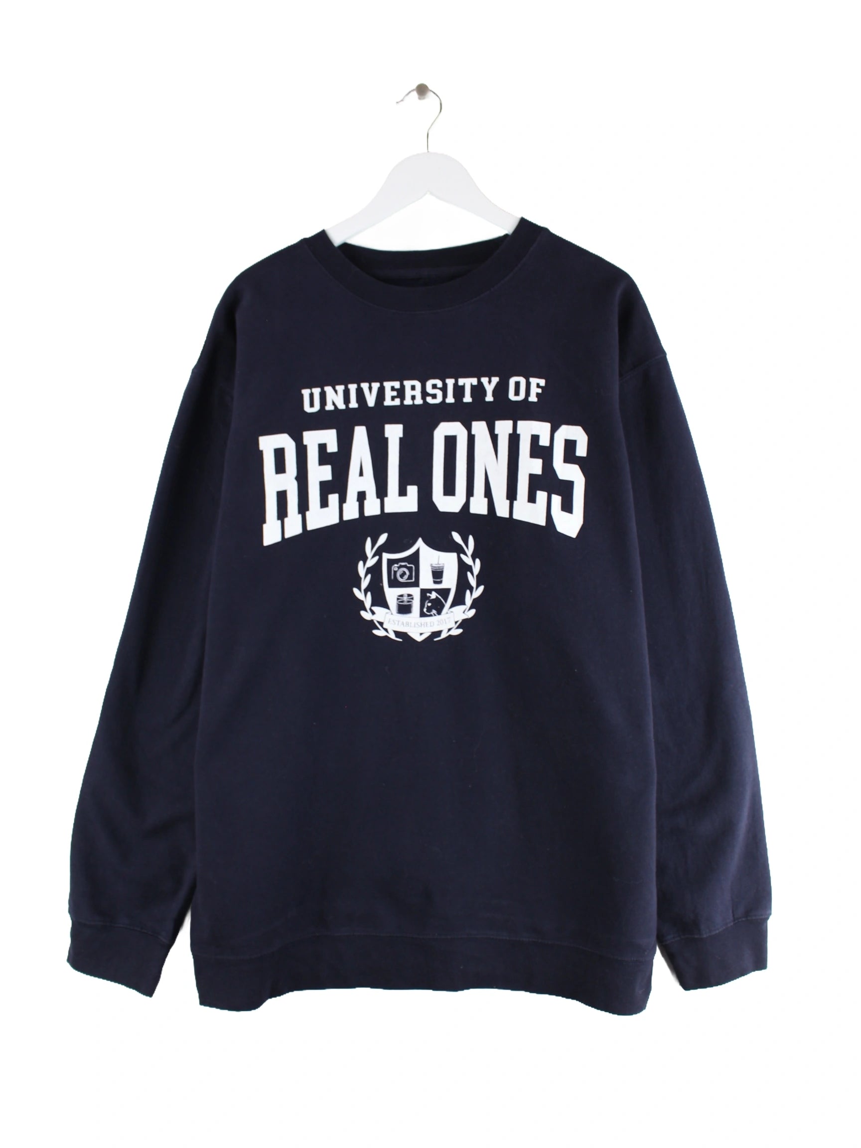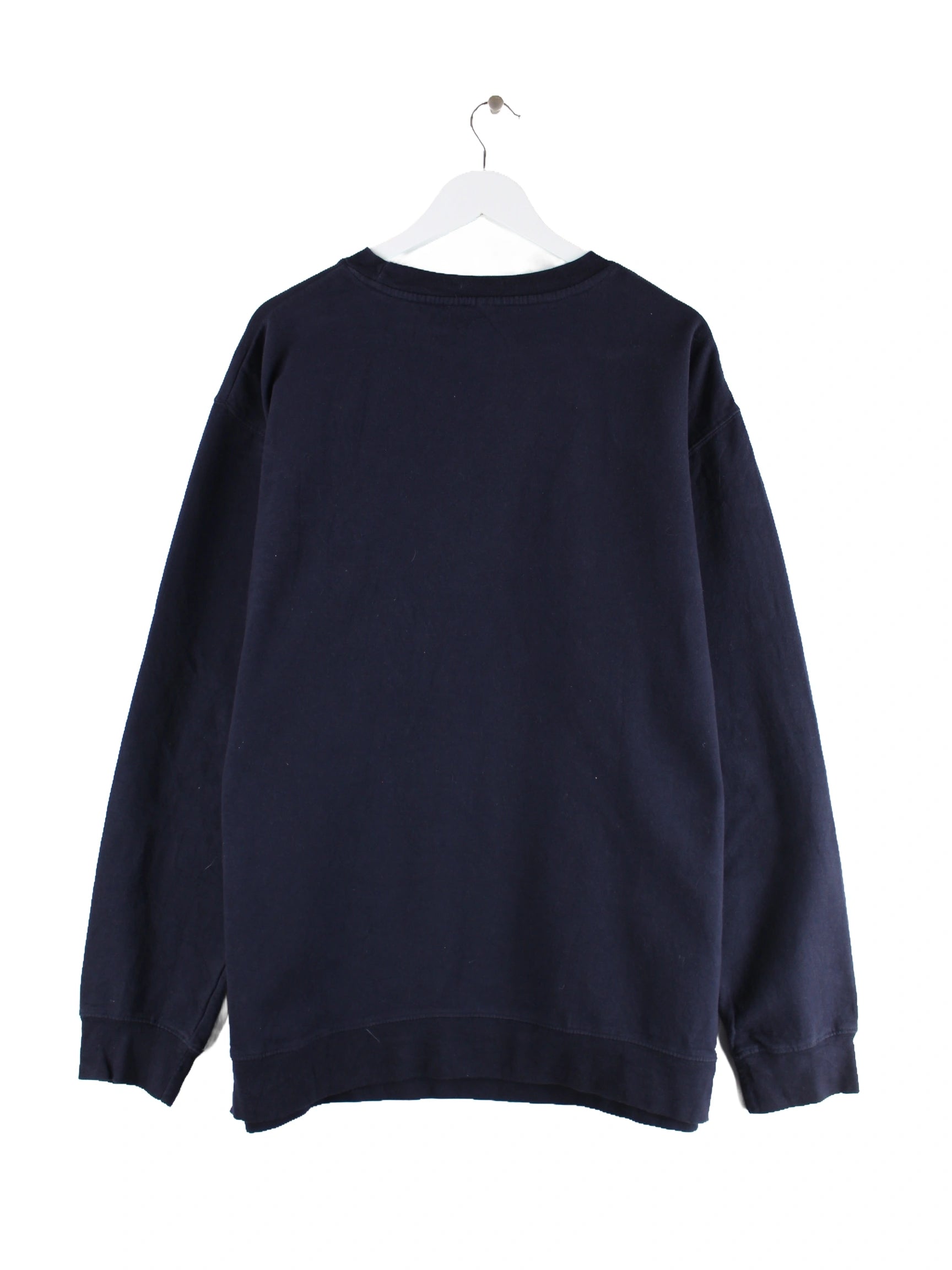 Blauer Vintage Sweater in Größe XXL. Er ist aus einer Baumwollmischung produziert und in sehr gutem Zustand zu bekommen. Mit tollem University Print.