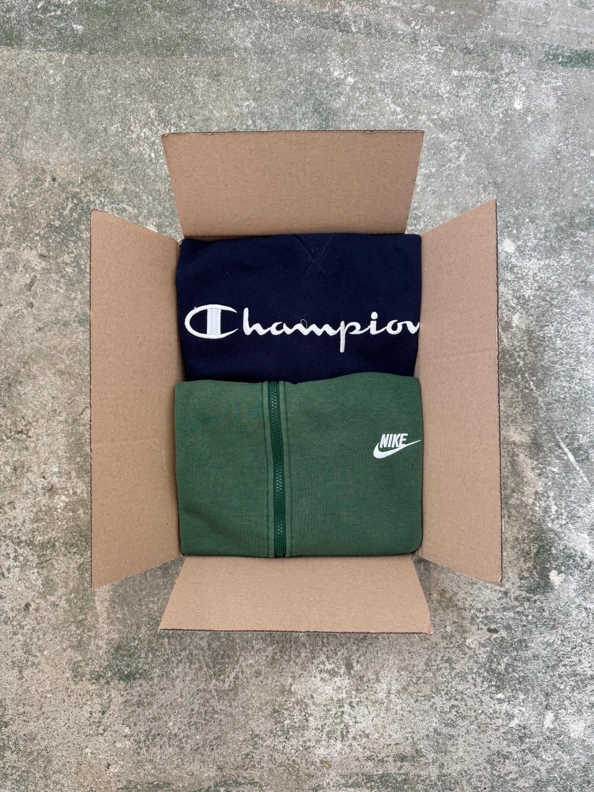 Die Marken Sweater und Hoodie Mystery Box enthält eine zufällige Auswahl an hochwertigen Secondhand Hoodies und Sweatern bekannter Marken. Jede Box wird individuell zusammengestellt und besteht ausschließlich aus Markenkleidung. Enthalten sind überwiegend Nike, Adidas, Tommy Hilfiger, Champion, Fila und weitere bekannte Marken.