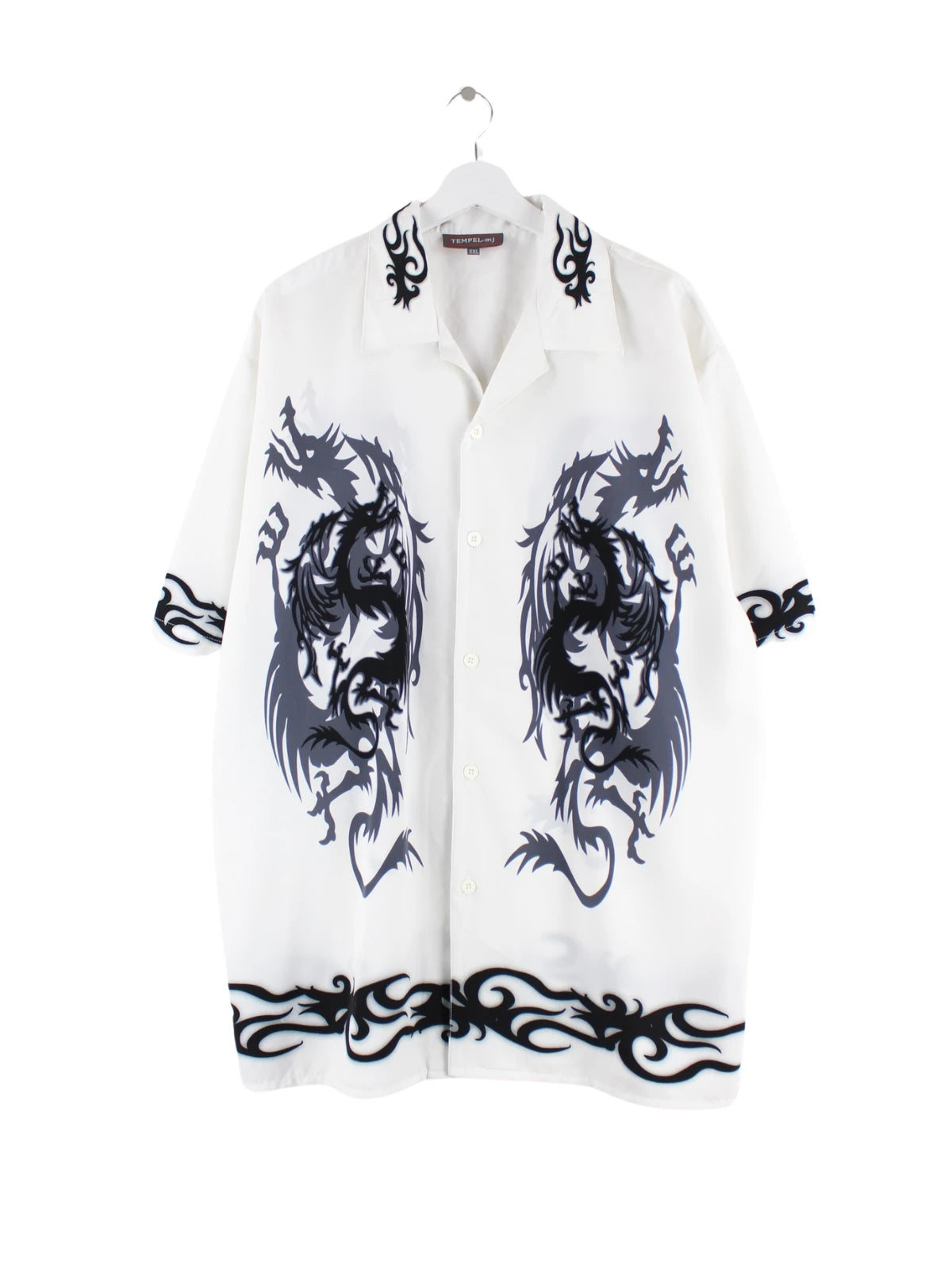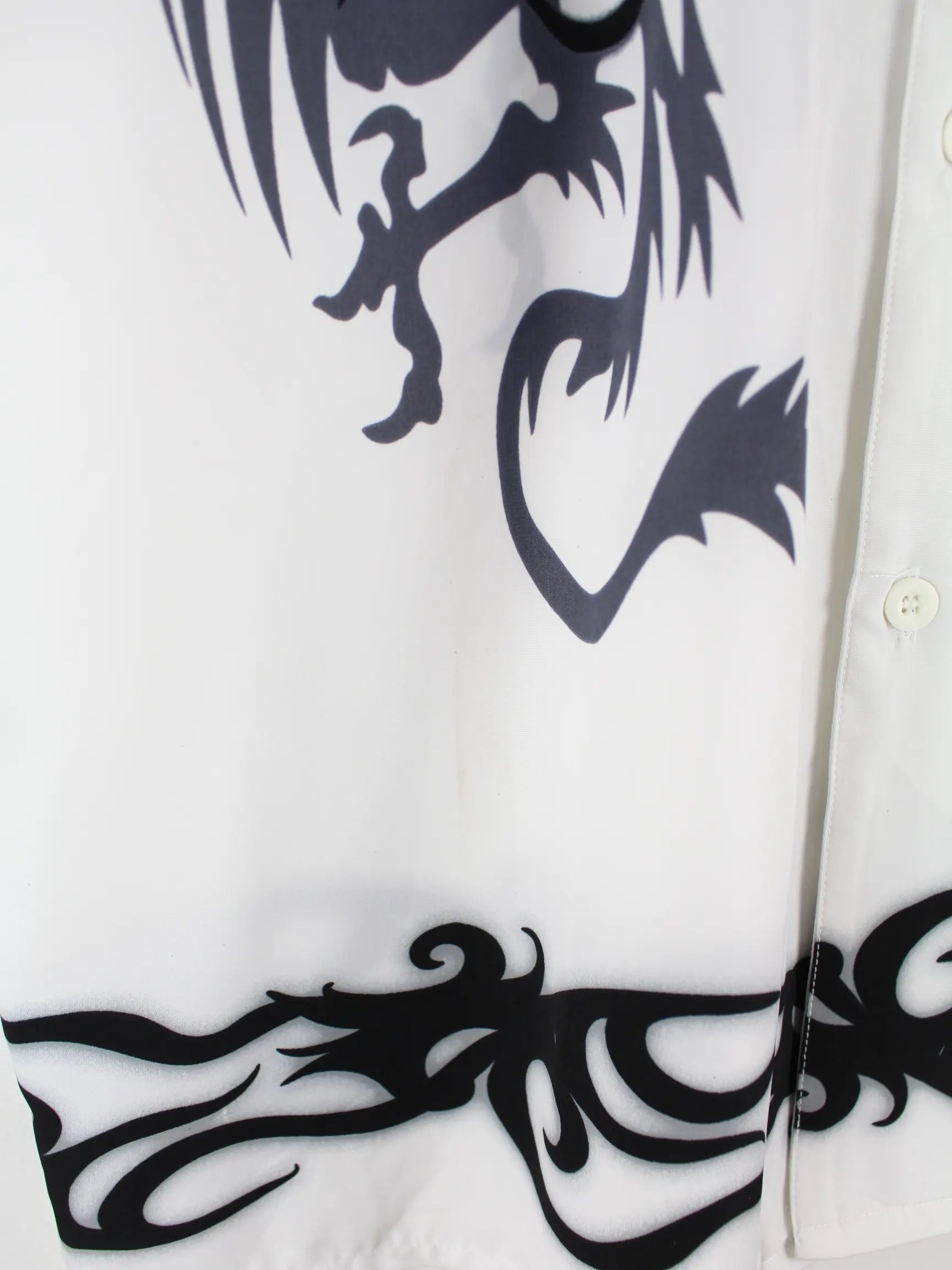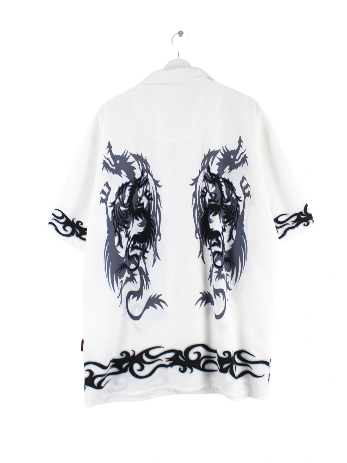 Vintage y2k Dragon Kurzarm Hemd Weiß XXL