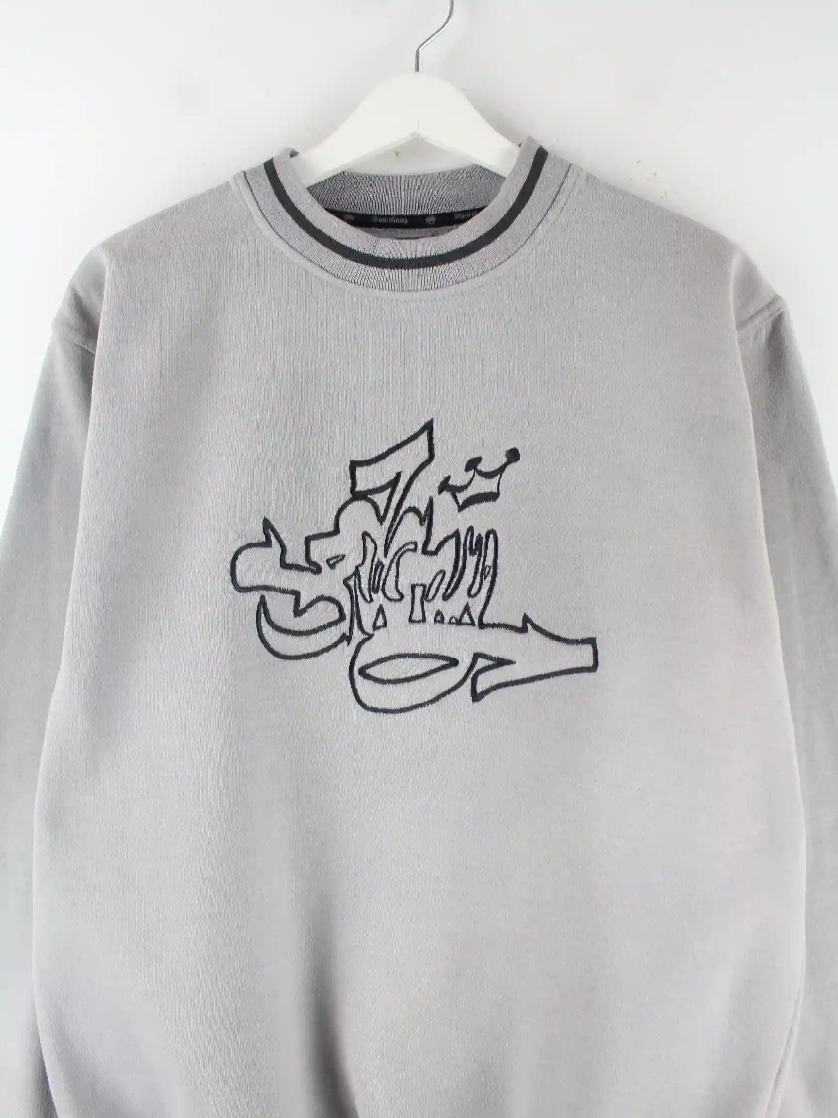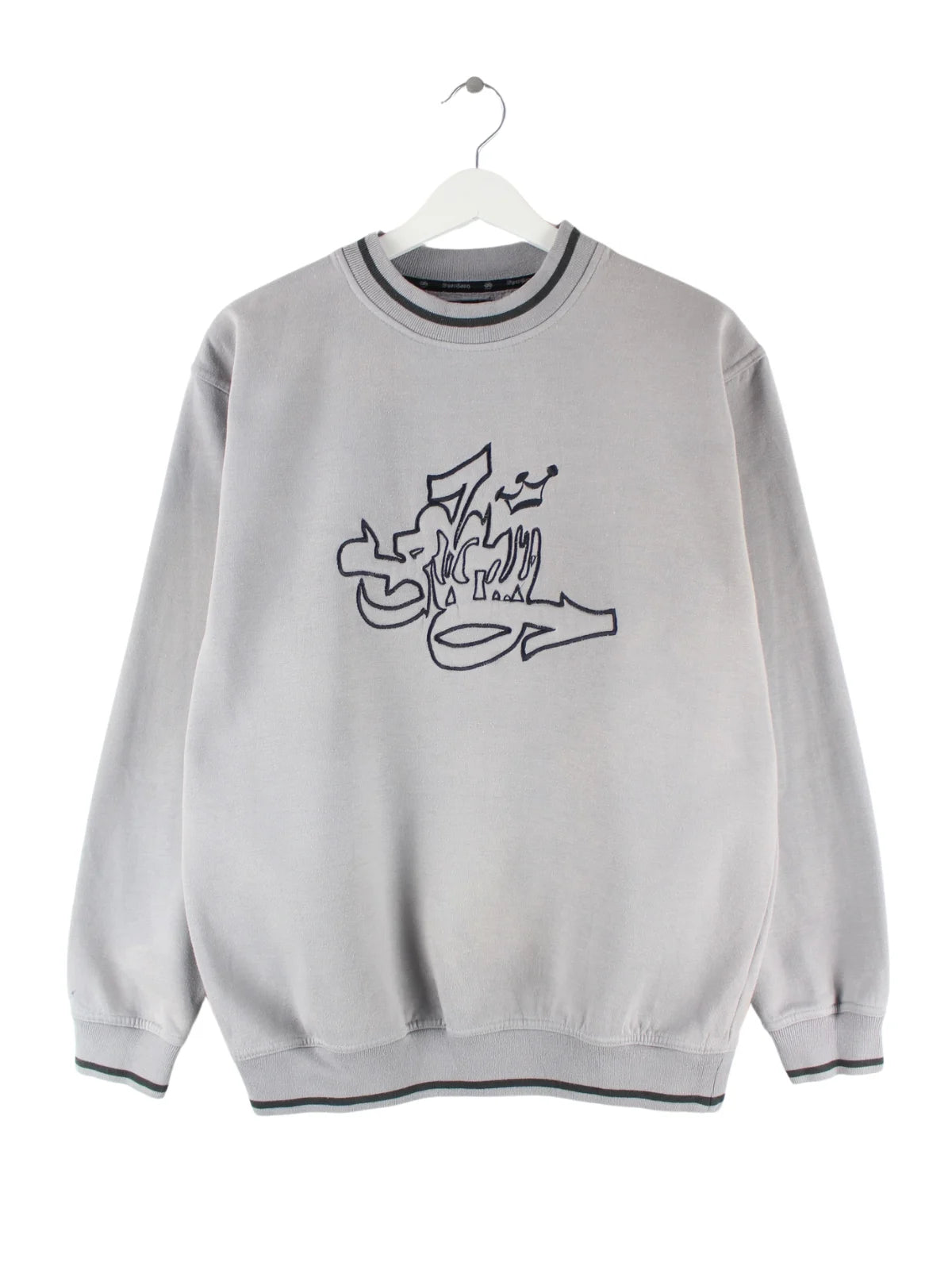 Vintage y2k Grafitti Embroidered Heavy Sweater Grau M
