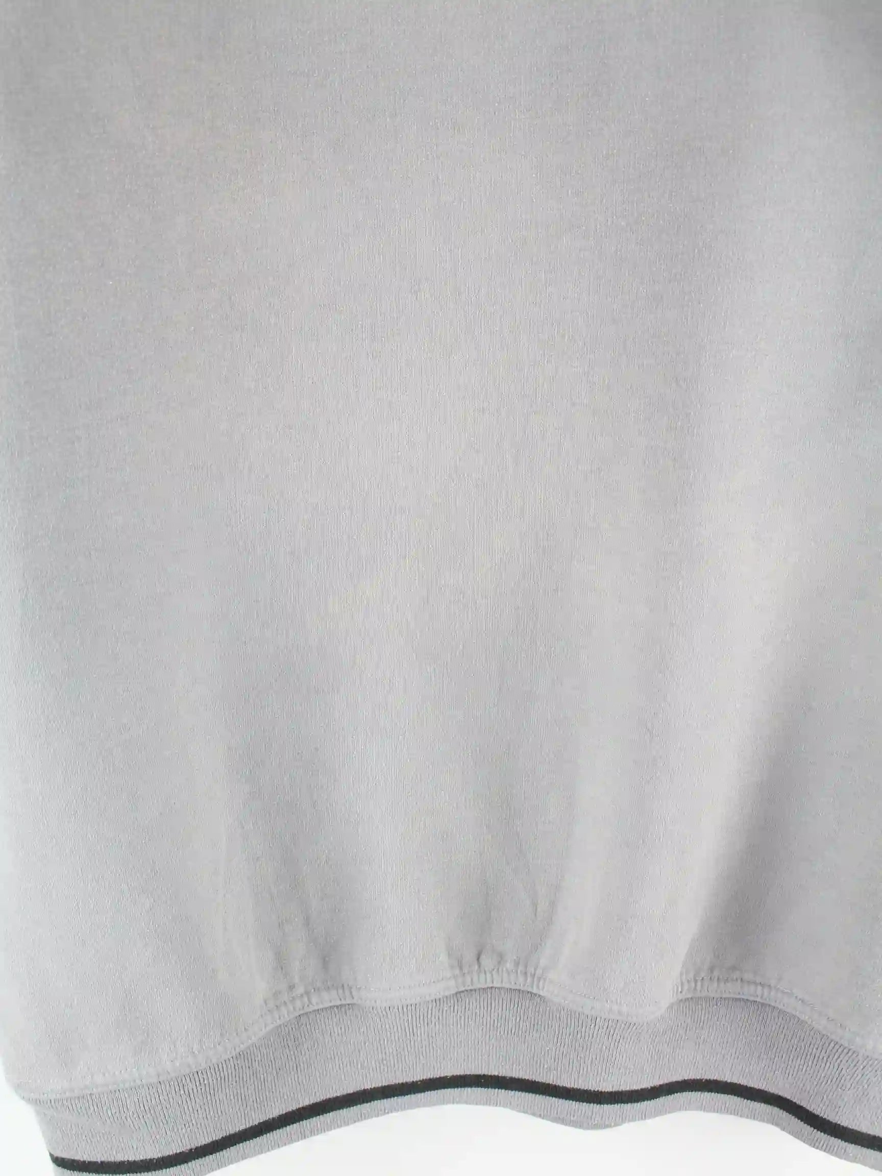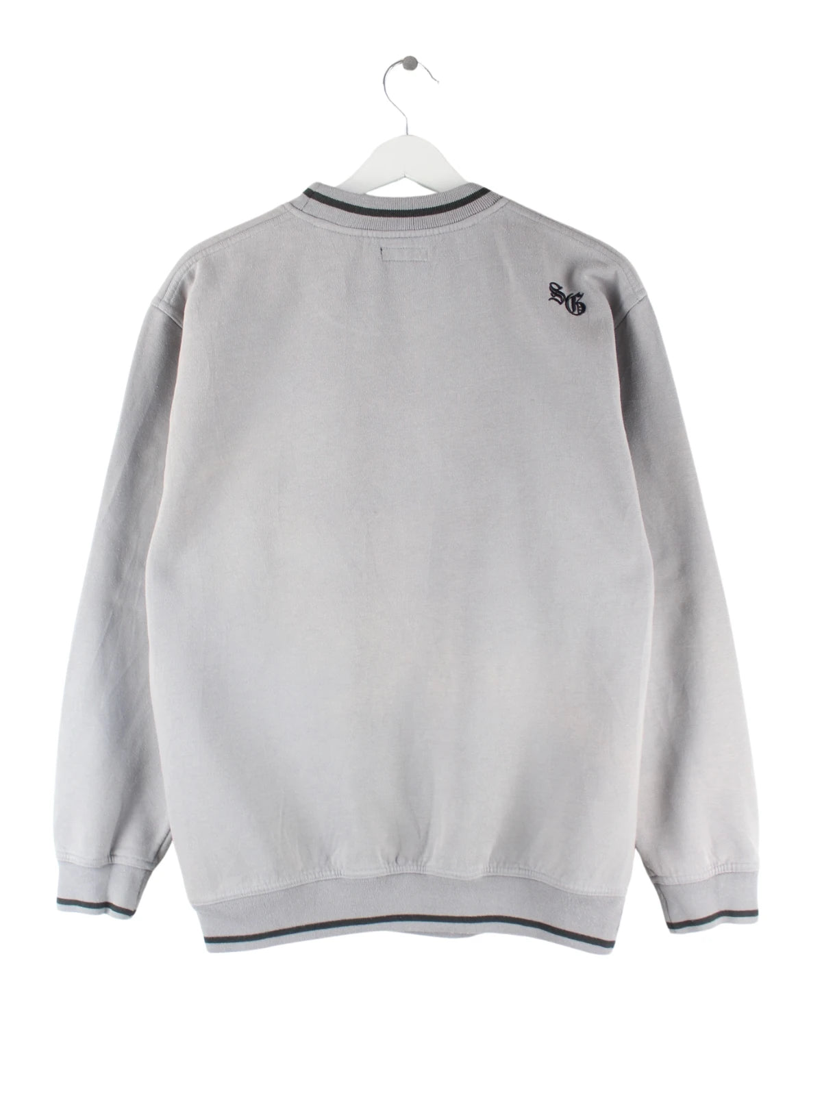 Grauer Vintage Sweater mit gestickten Motiven aus Anfang der 2000'er in Größe M. Er ist aus einer Baumwollmischung und in gutem Zustand zu bekommen.