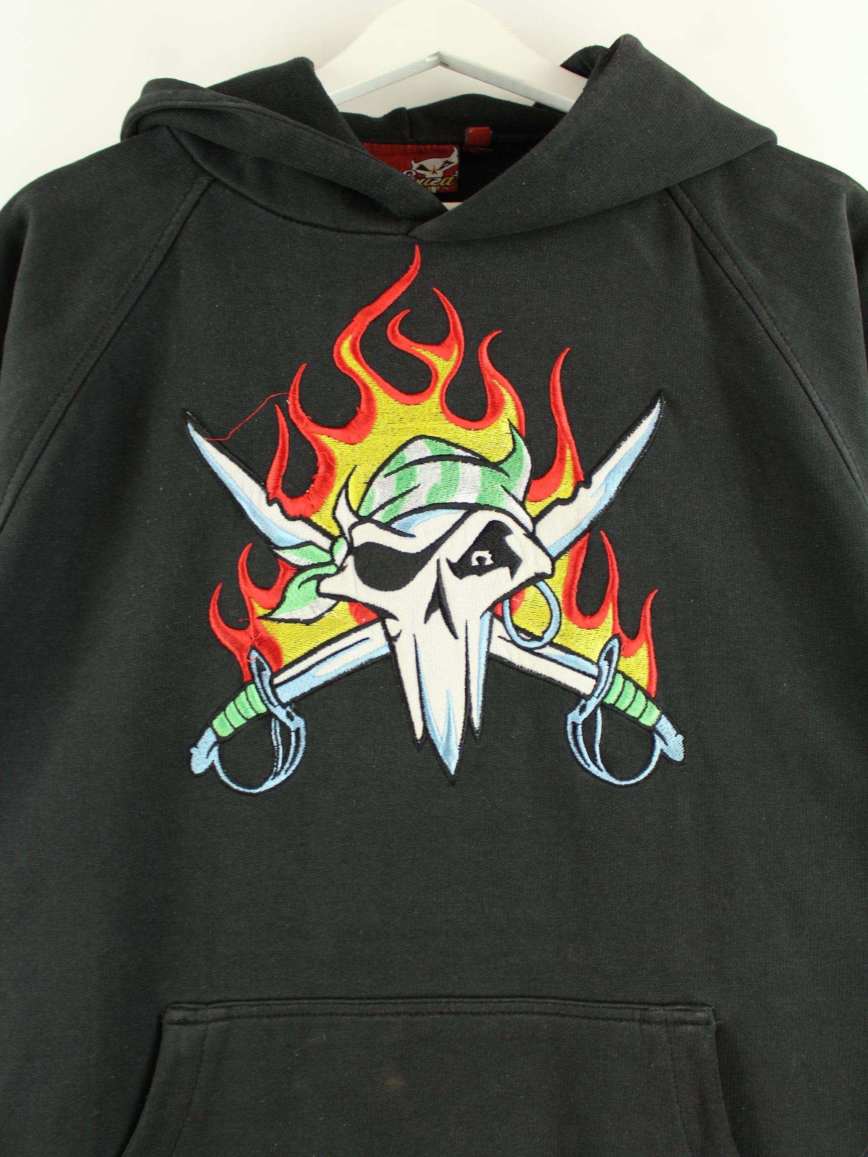 Vintage y2k Pirate Skull Embroidered Hoodie Schwarz XL