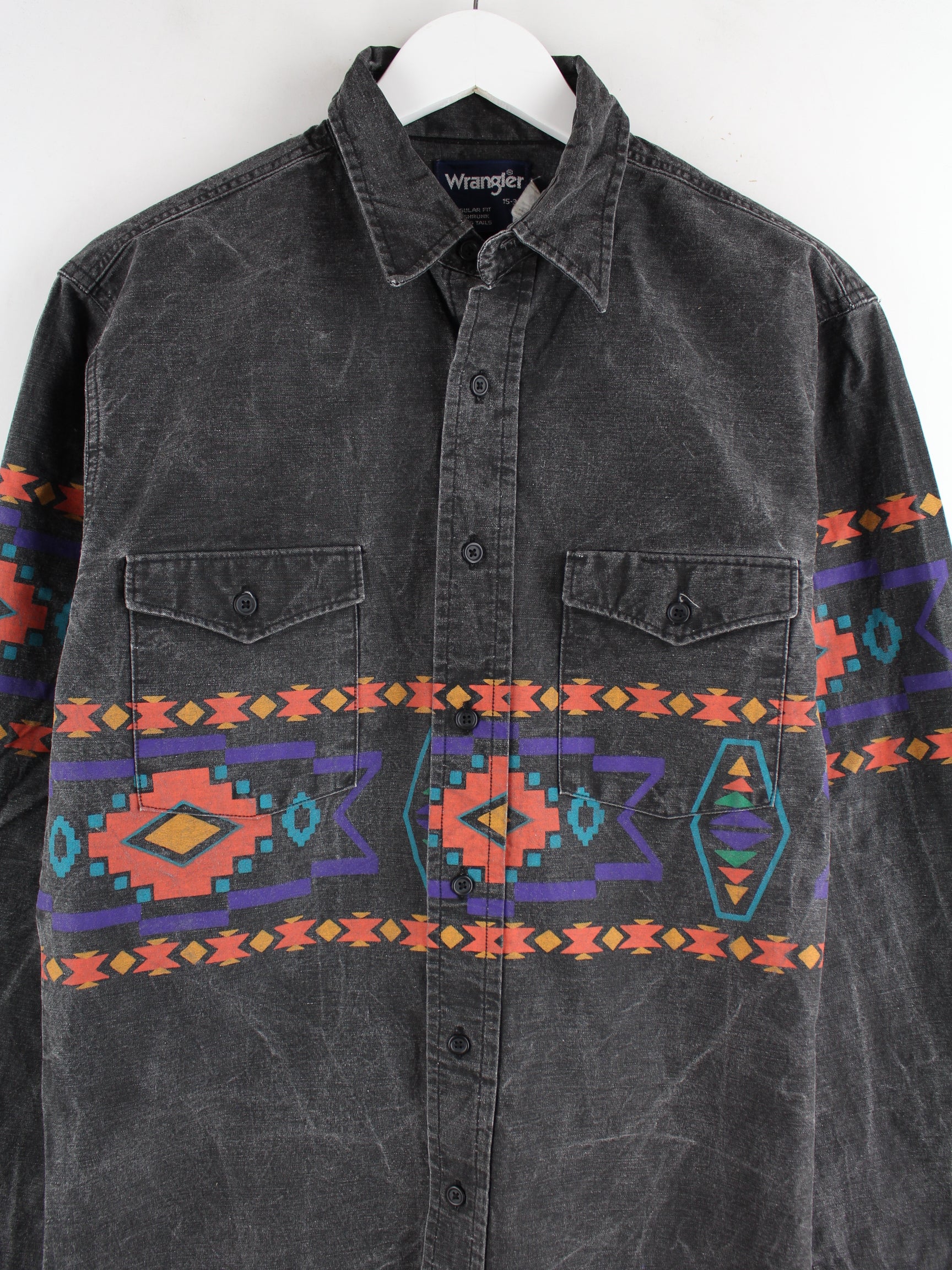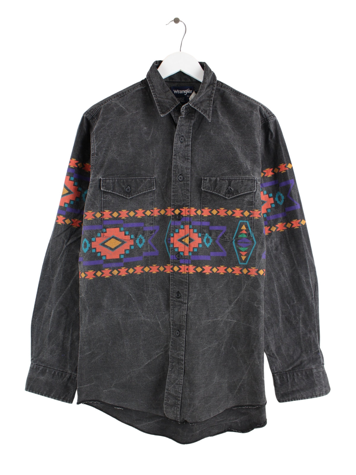 Wrangler 90s Vintage Navajo Jeans Hemd Schwarz L