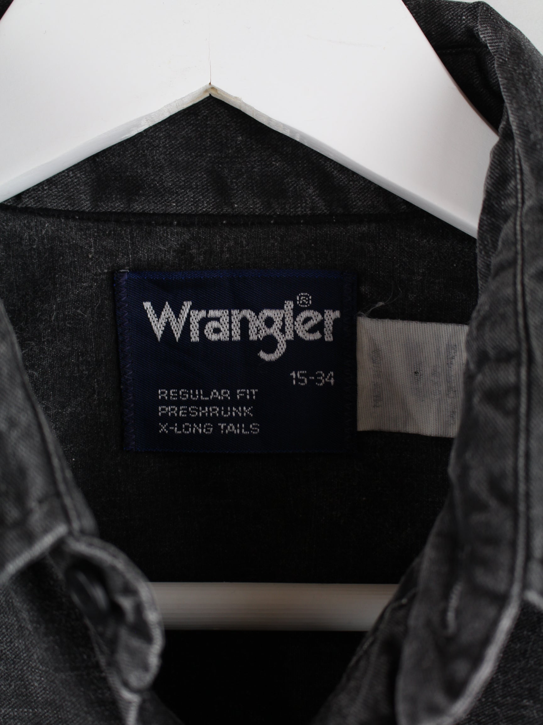 Schwarzes Freizeit Hemd des Labels Wrangler aus den 90'ern in Größe L. Es ist aus Baumwolle gemacht und in gutem Zustand in Stock.