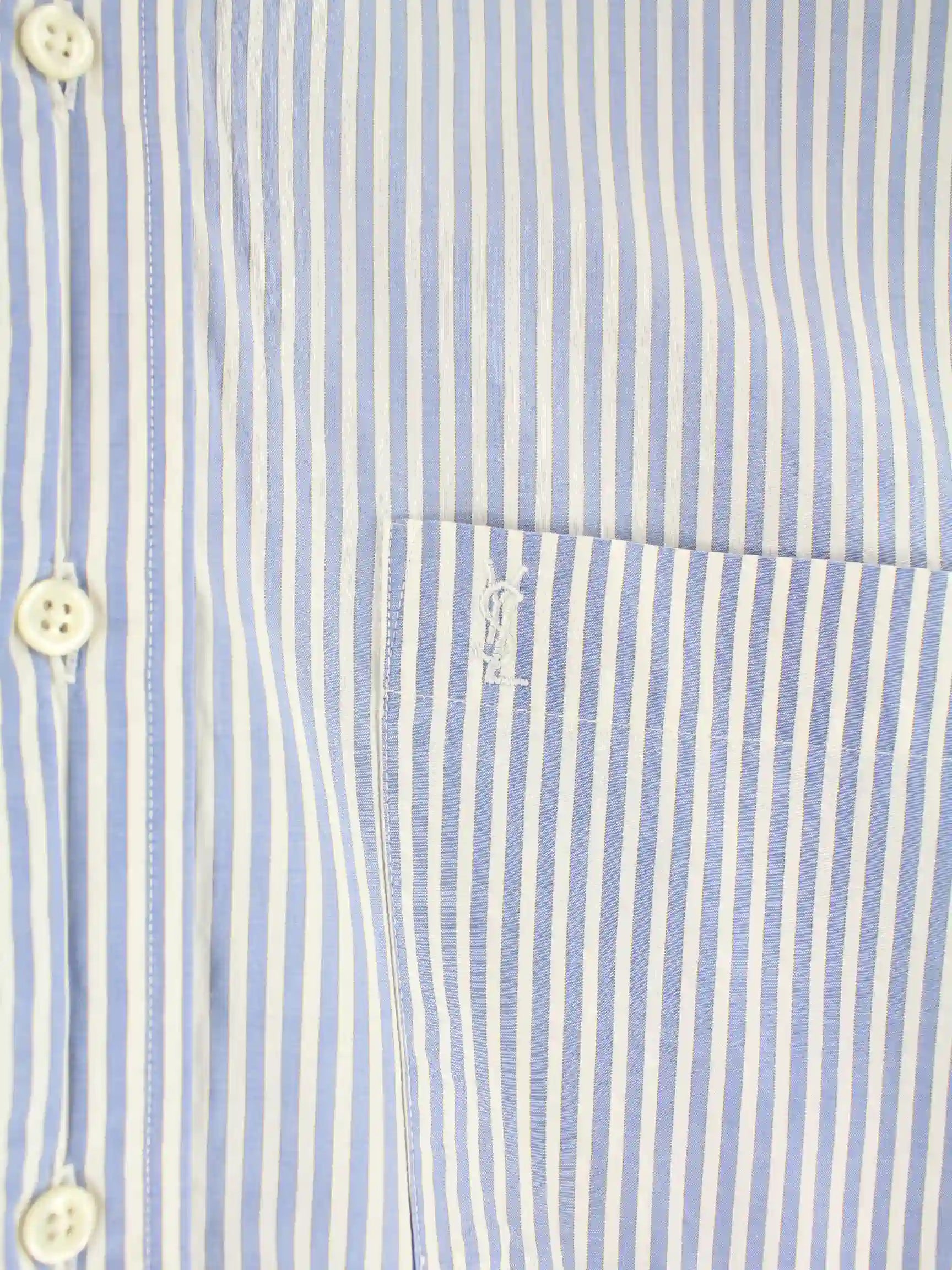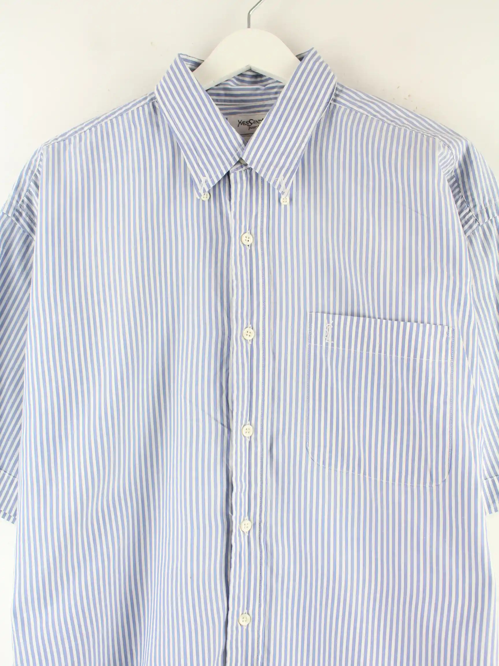 Yves Saint Laurent 90s Vintage Striped Kurzarm Hemd Blau L