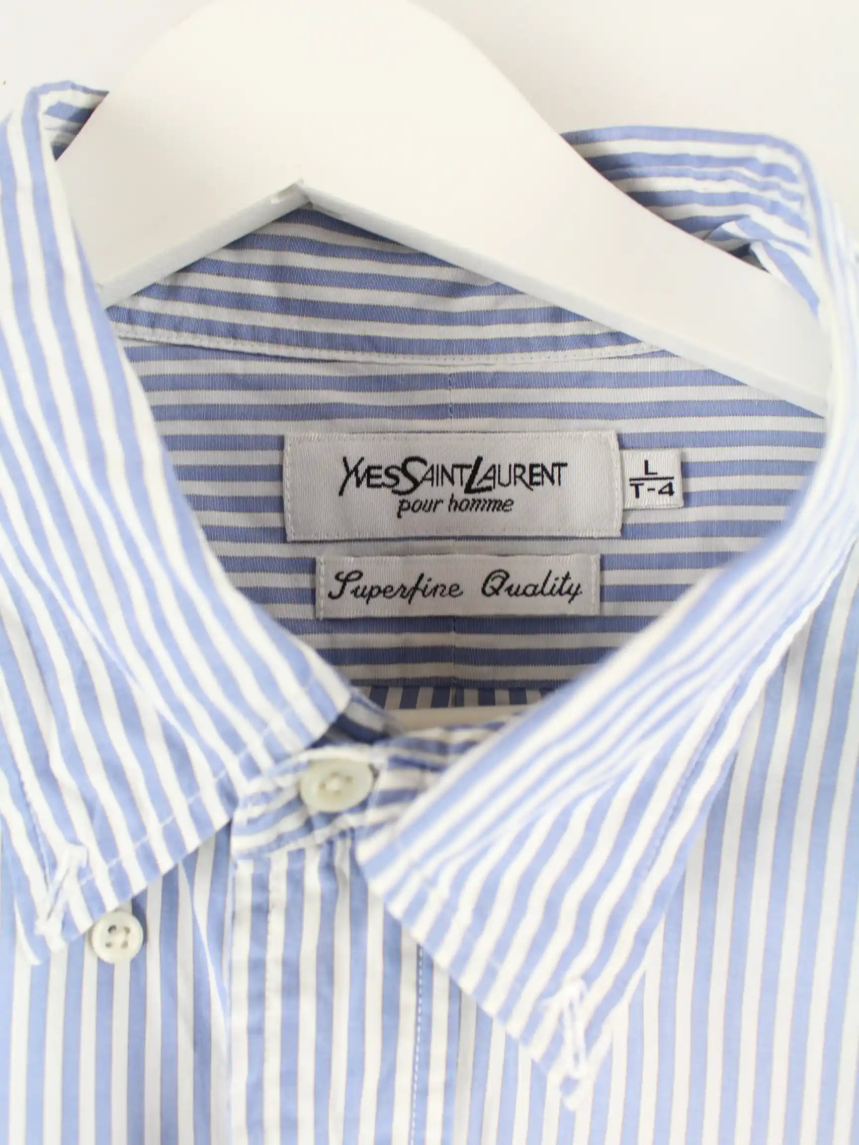 Blaues Freizeit Hemd aus dem Hause Yves Saint Laurent aus den 90'ern in Größe L. Es ist aus Baumwolle gemacht und in sehr gutem Zustand im Angebot.