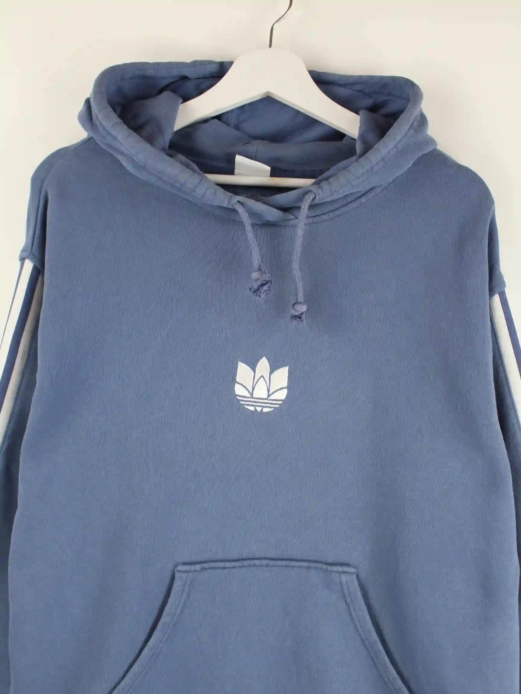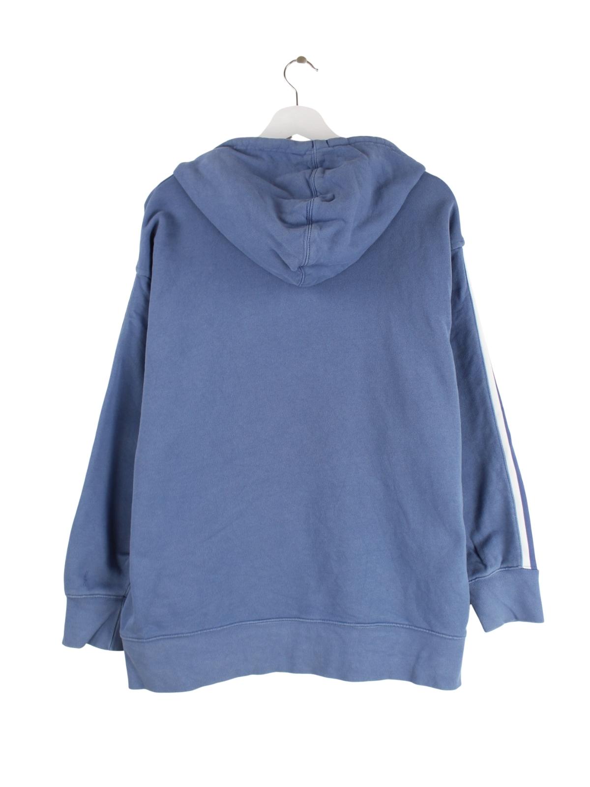Blauer Hoodie aus dem Hause Adidas in Größe XL. Er ist aus einer Baumwollmischung gemacht und in sehr gutem Zustand in Stock.