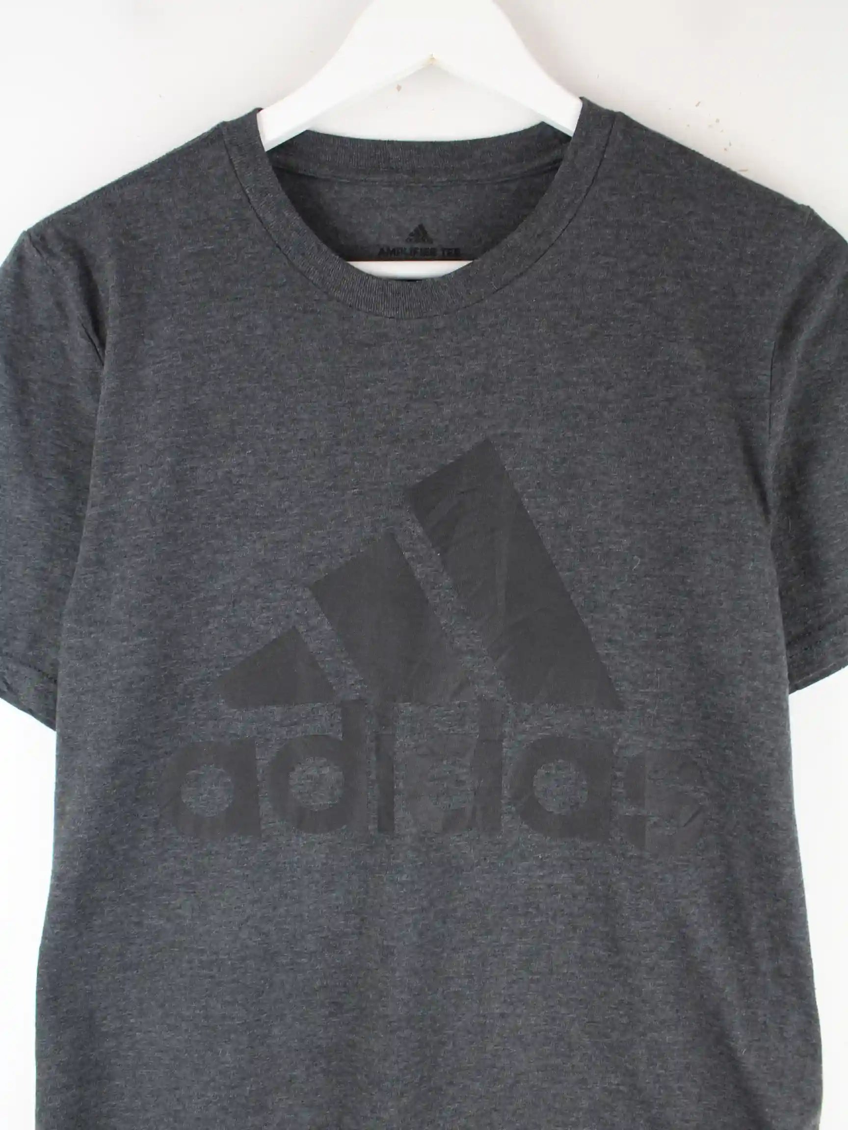 T-Shirt aus dem Hause Adidas in Größe S. Es ist aus Synthetik und in Grau zu bekommen. Mit tollem Logo Print.