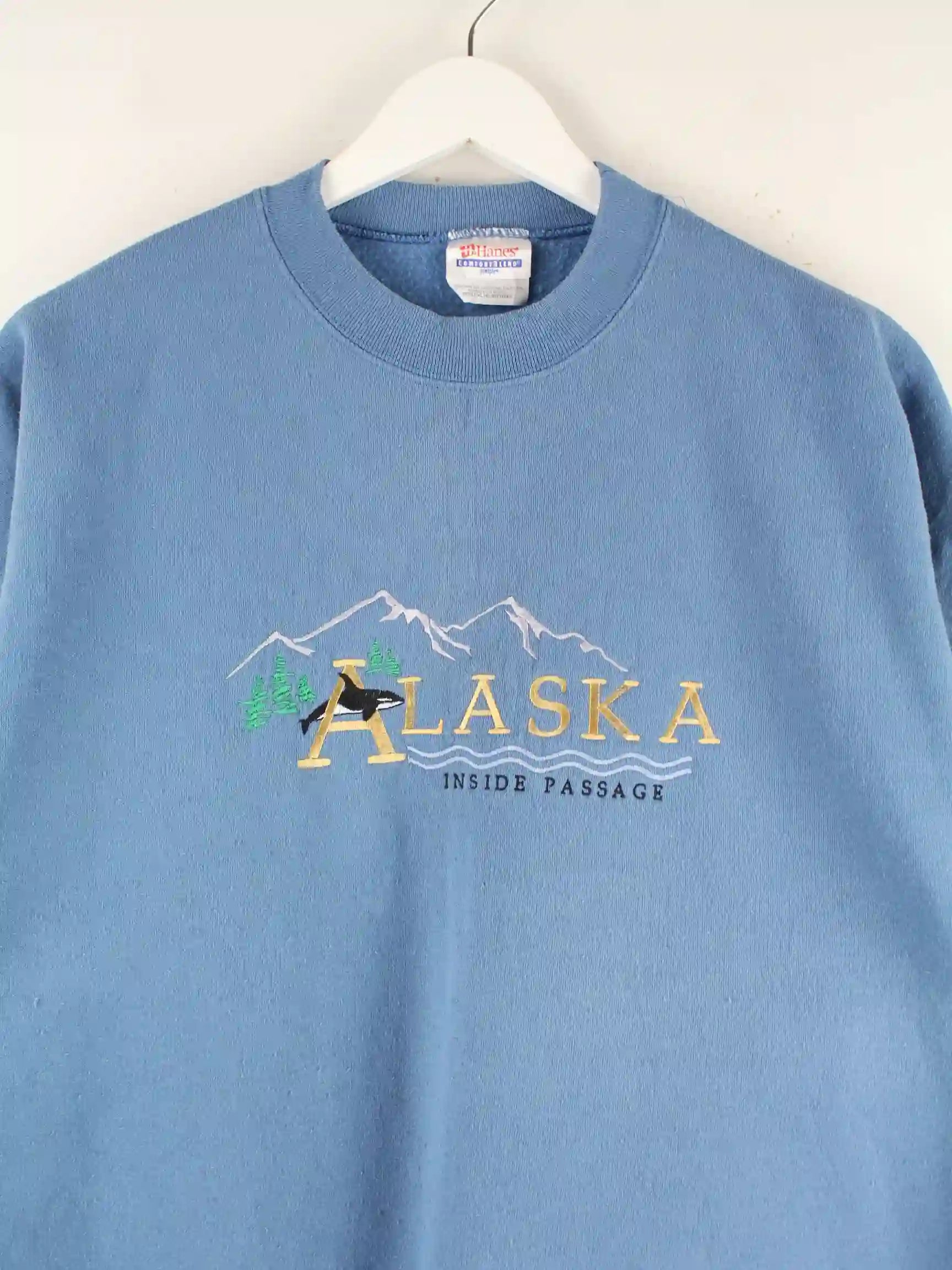 Hanes 90s Vintage Alaska Embroidered Sweater Blau XL