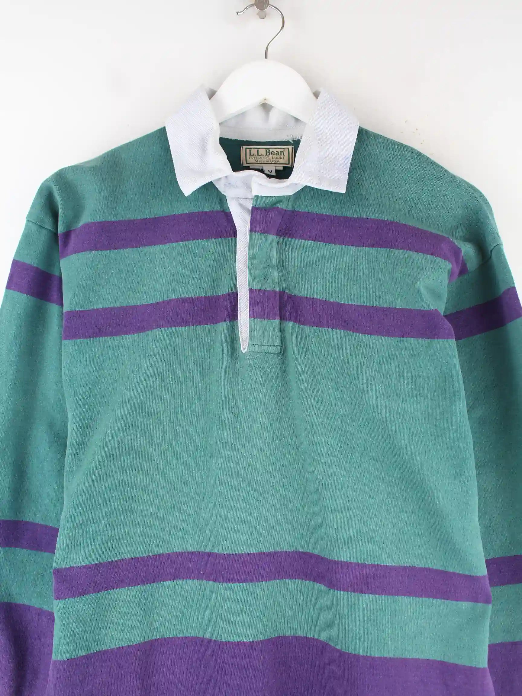 L.L. Bean 90s Vintage Striped Langarm Polo Grün M