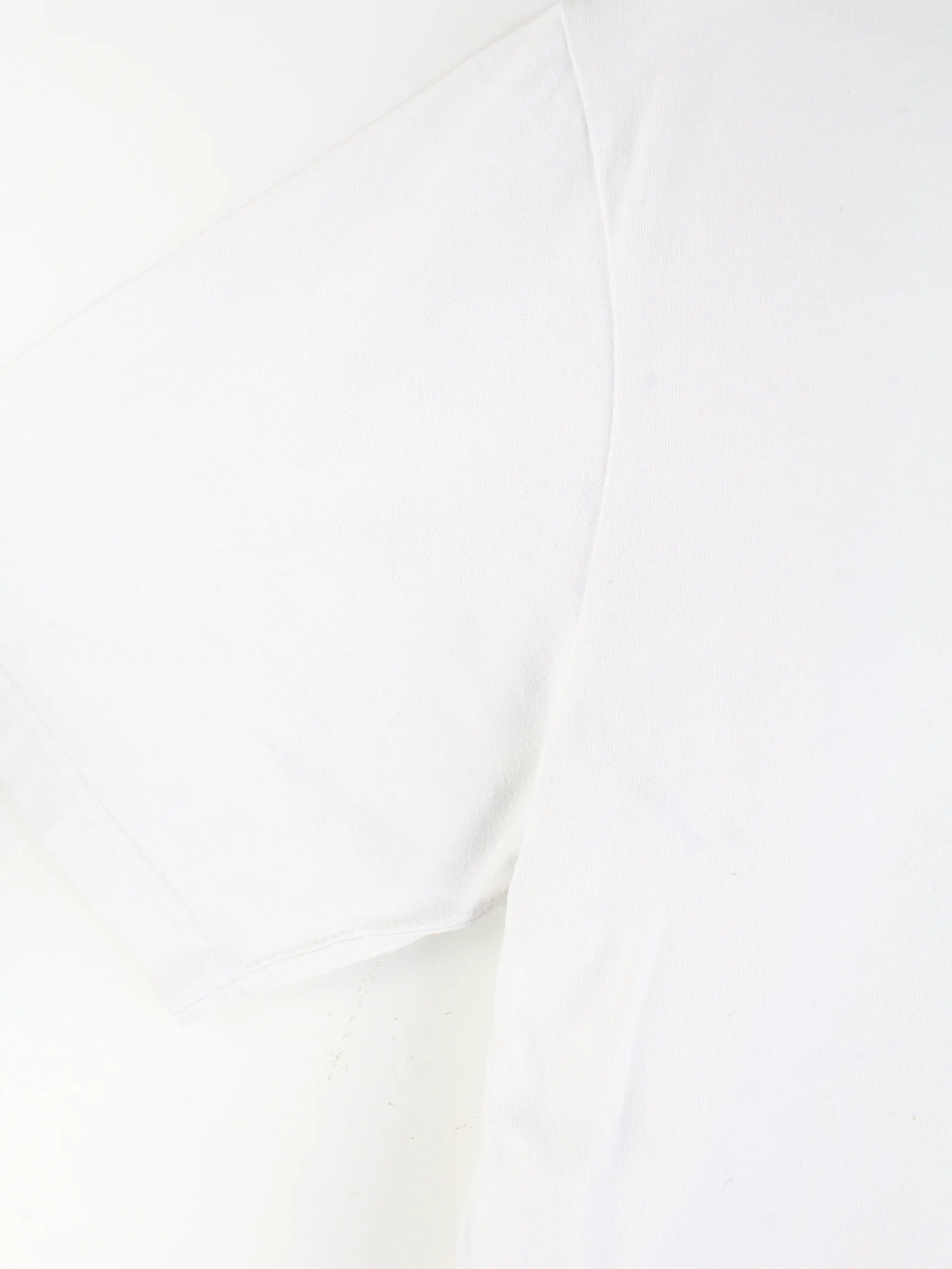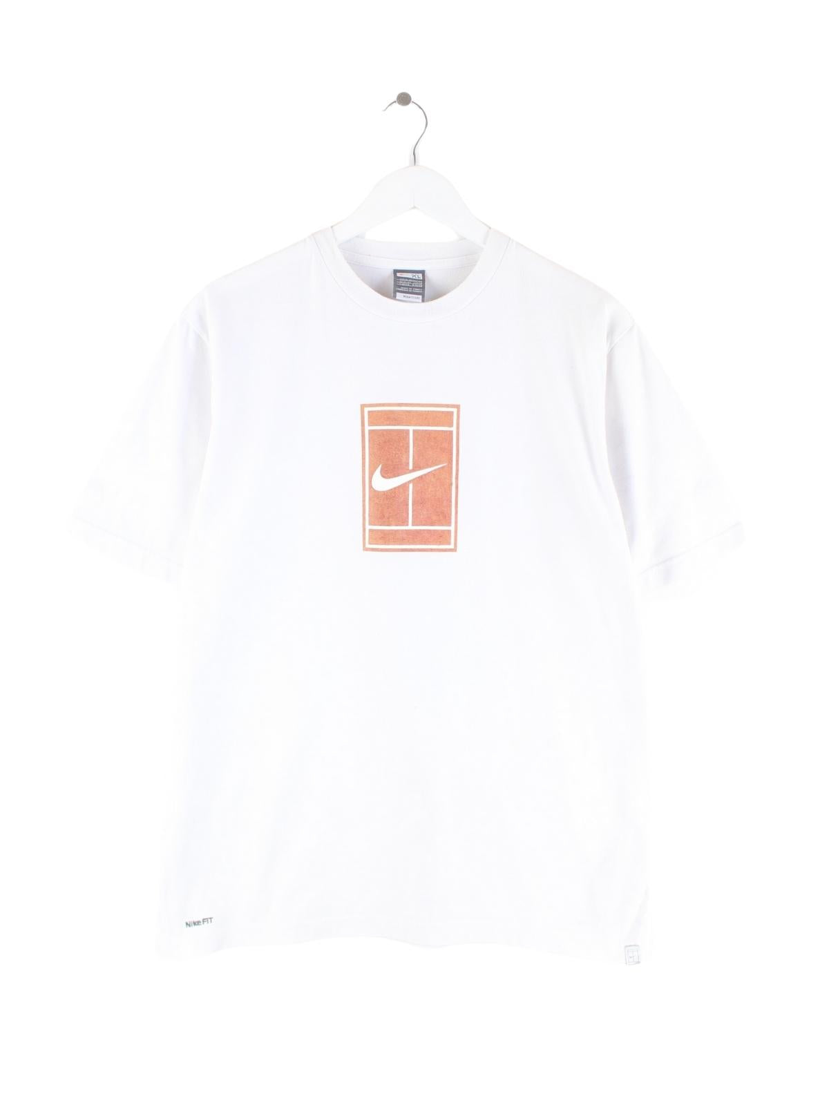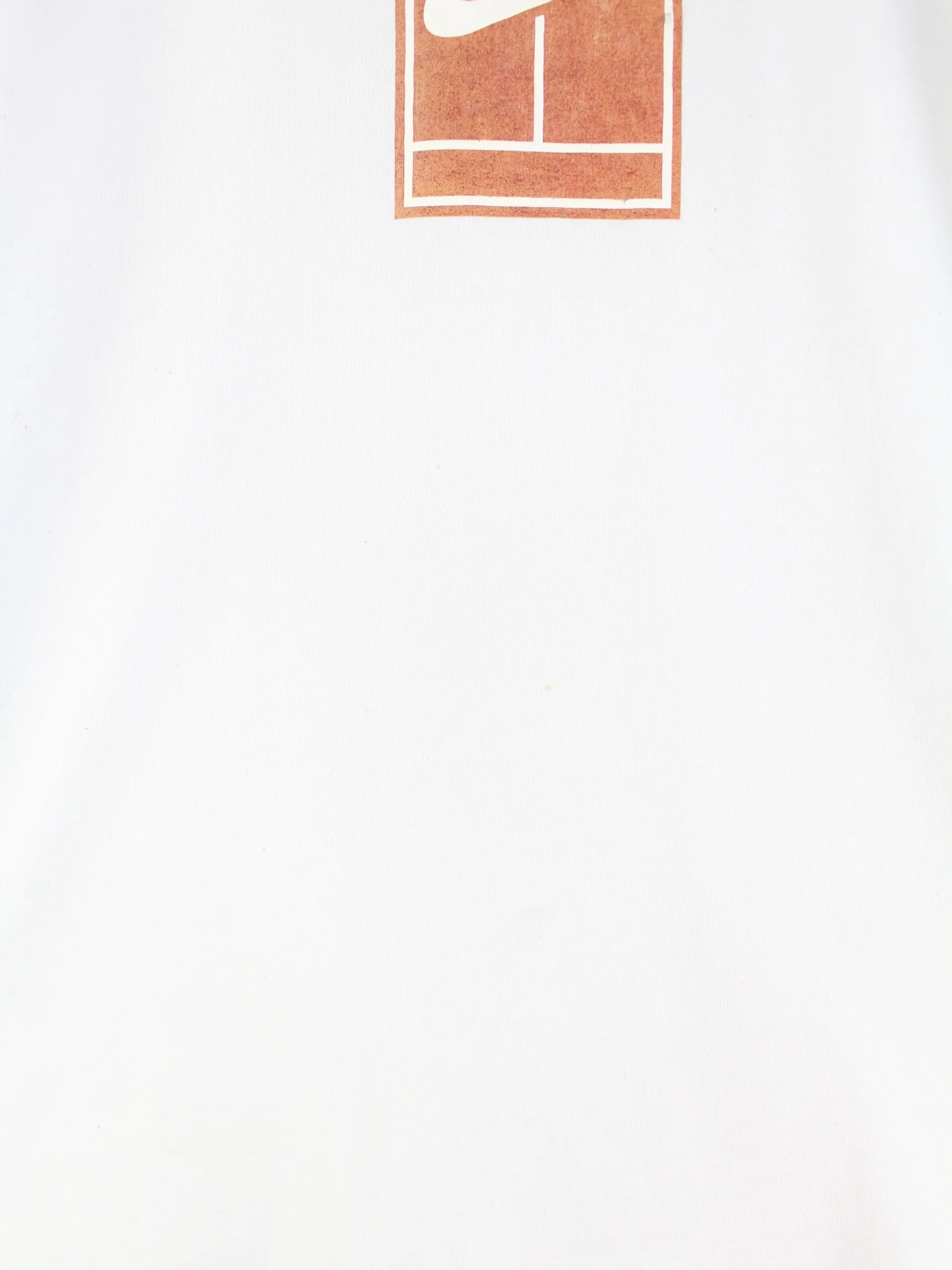 Weißes T-Shirt der Brand Nike in Größe XL. Es ist aus Baumwolle hergestellt. Den Zustand würden wir als 'In Ordnung' bezeichnen (vergl. Bilder).Mit chiquem Court Print.