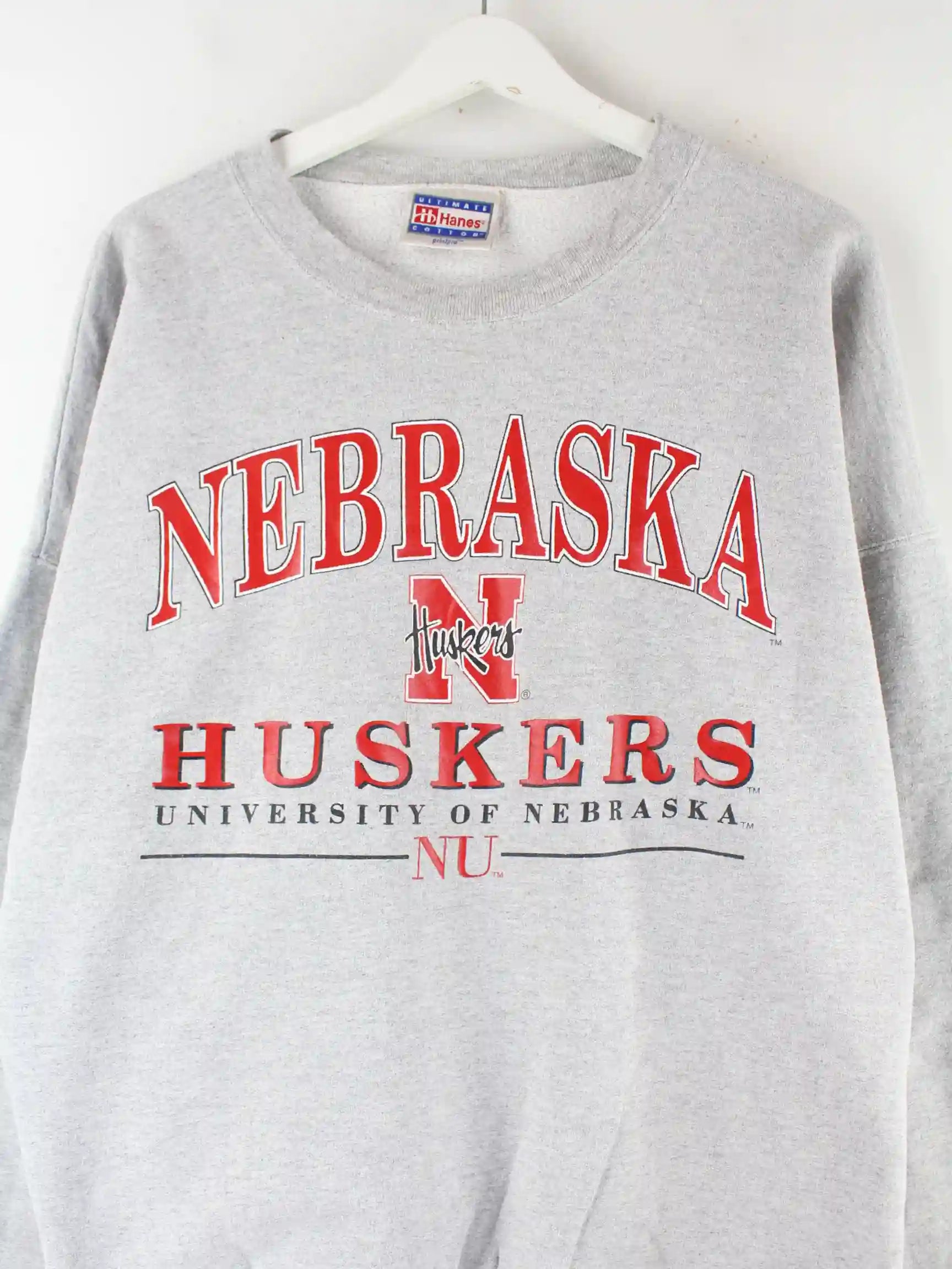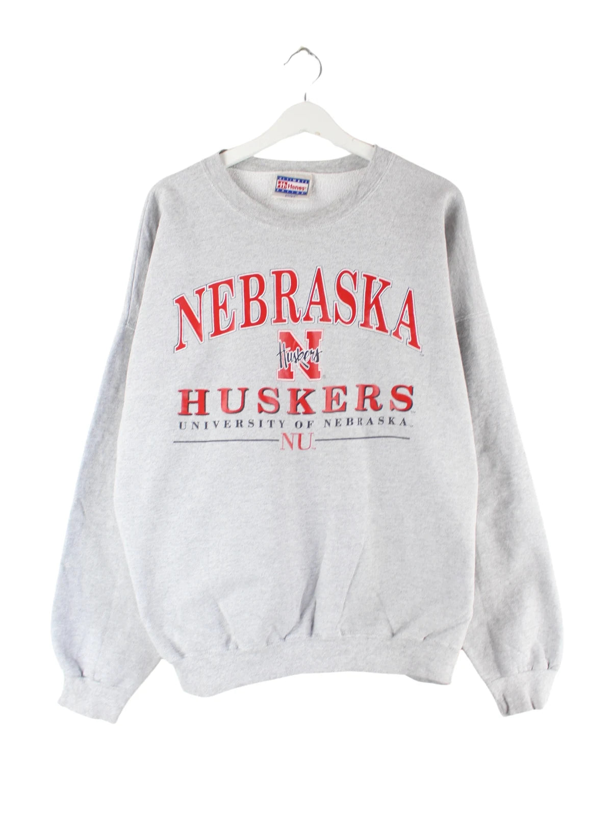 Hanes 90s Vintage Nebraska Huskers Print Heavy Sweater Grau XL