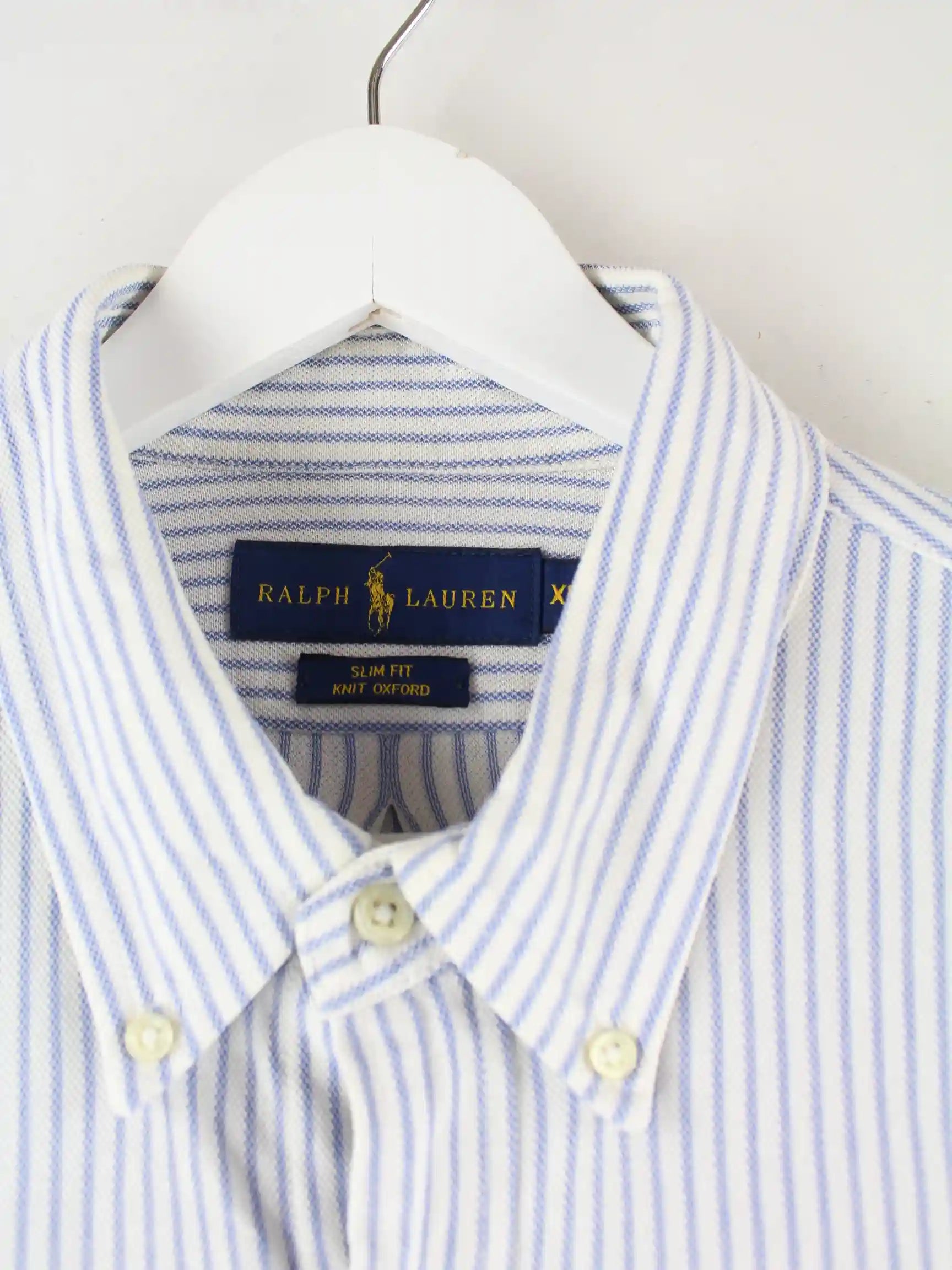 Ralph Lauren Slim Fit Oxford Knit Striped Hemd Weiß XL
