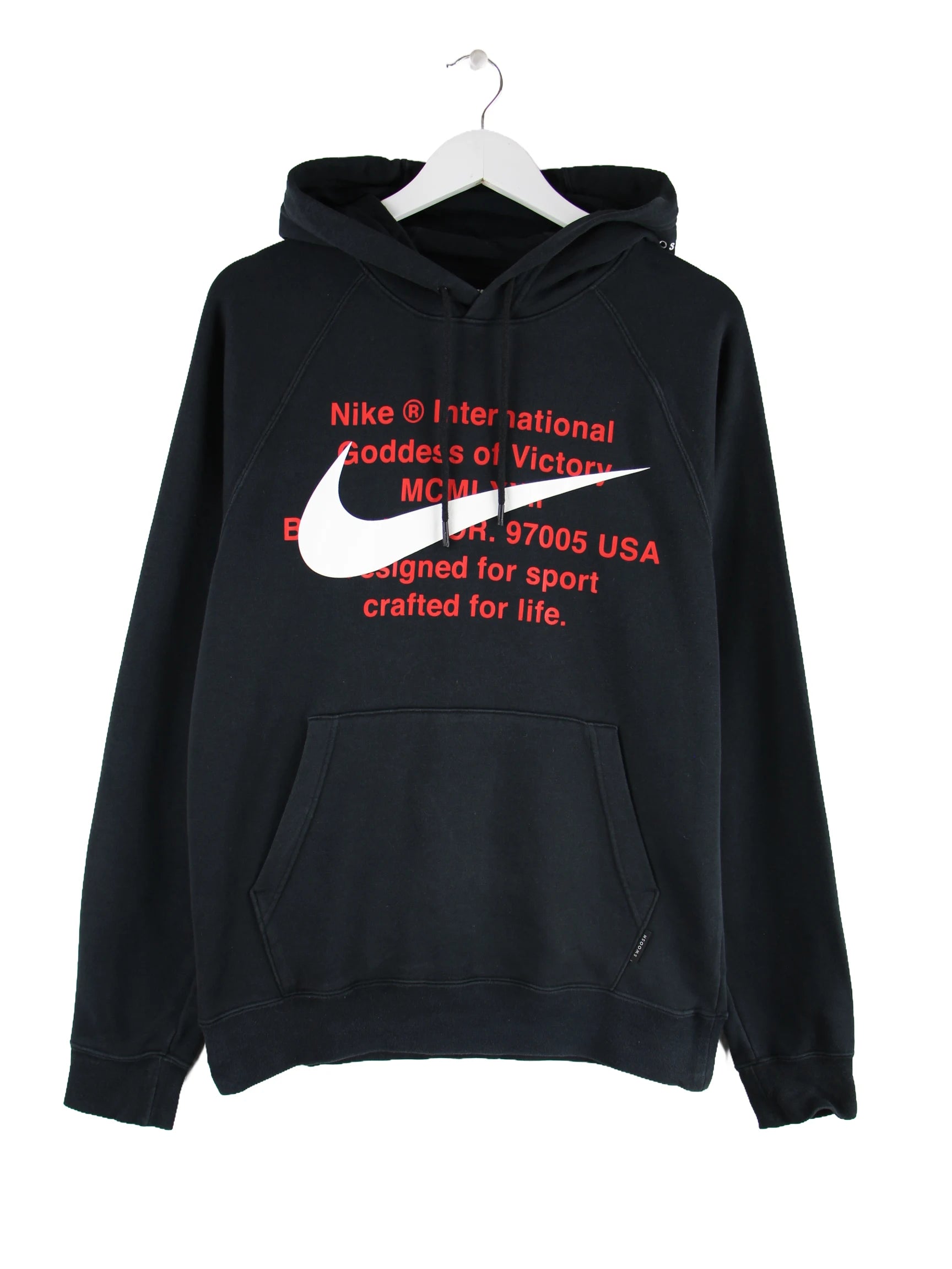 Hoodie des Labels Nike in Größe S. Er ist aus einer Baumwollmischung hergestellt und in Schwarz lieferbar. Mit tollem Swoosh Print.