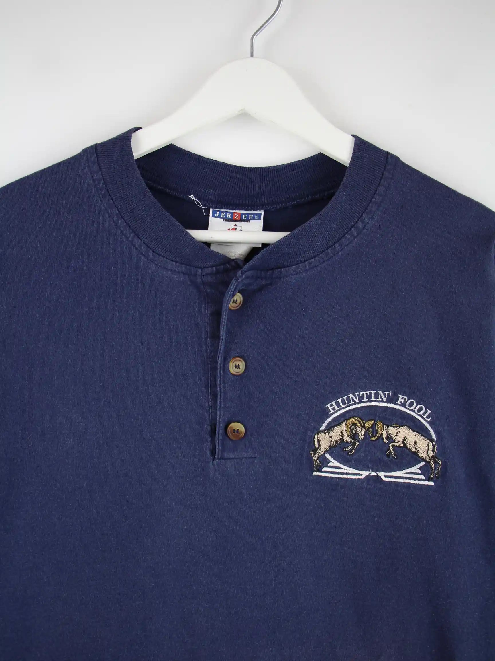 Jerzees 00s Huntin Fool T-Shirt Blau L
