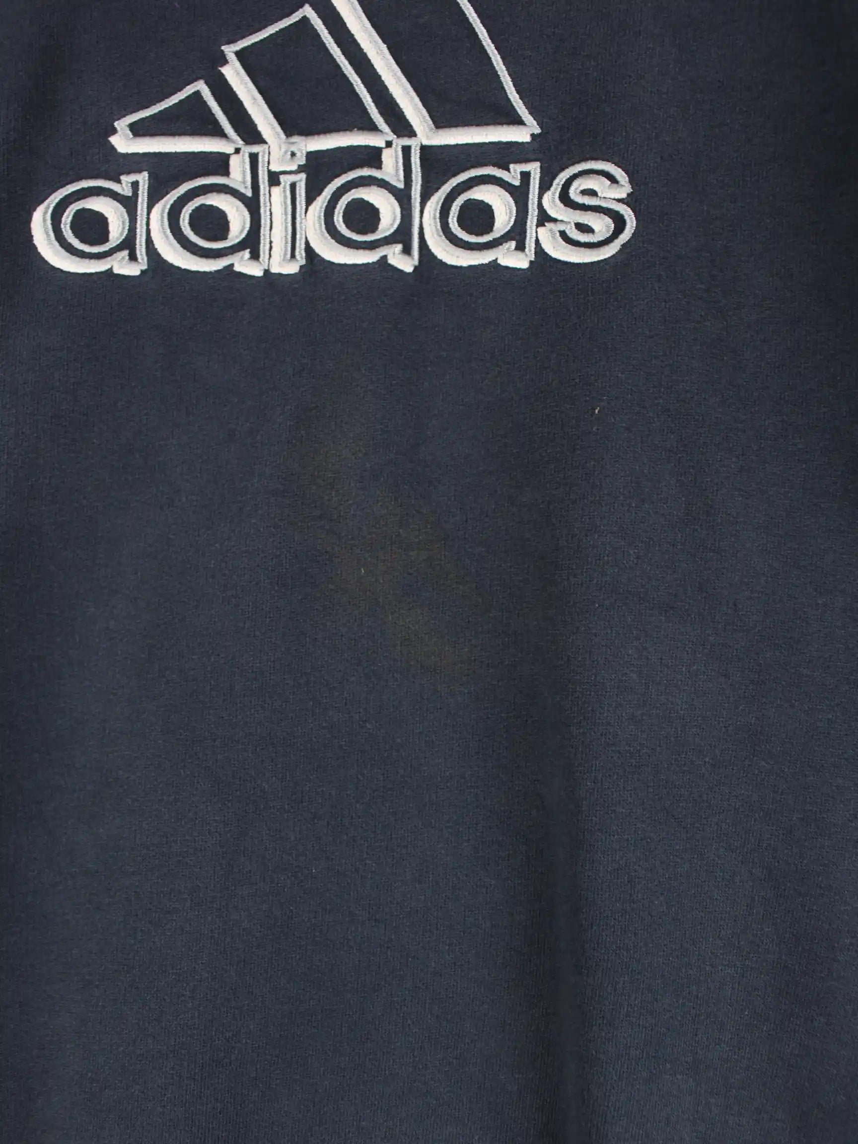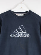 Blauer Sweater vom Label Adidas in Größe XS. Er ist aus einer Baumwollmischung gemacht und in gutem Zustand vorrätig.