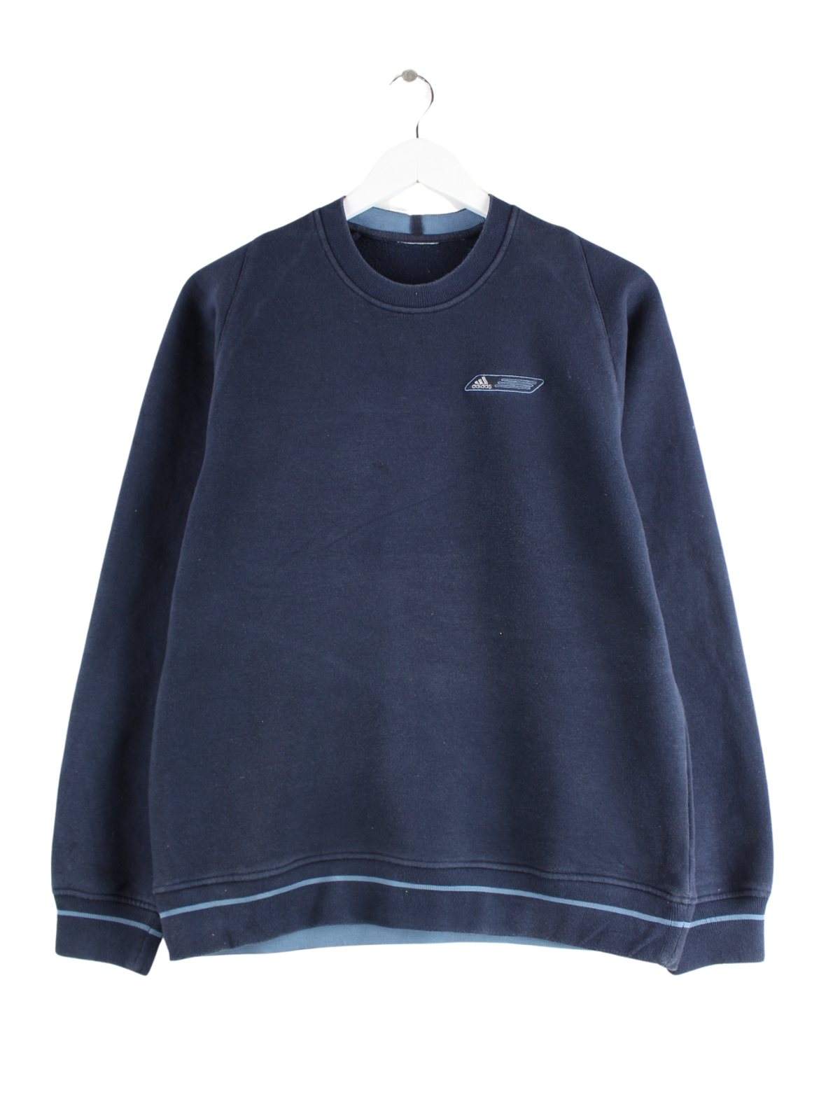 Sweater from Adidas with embroidery in size S from the early 2000s. It is made from a cotton blend and is available in blue.