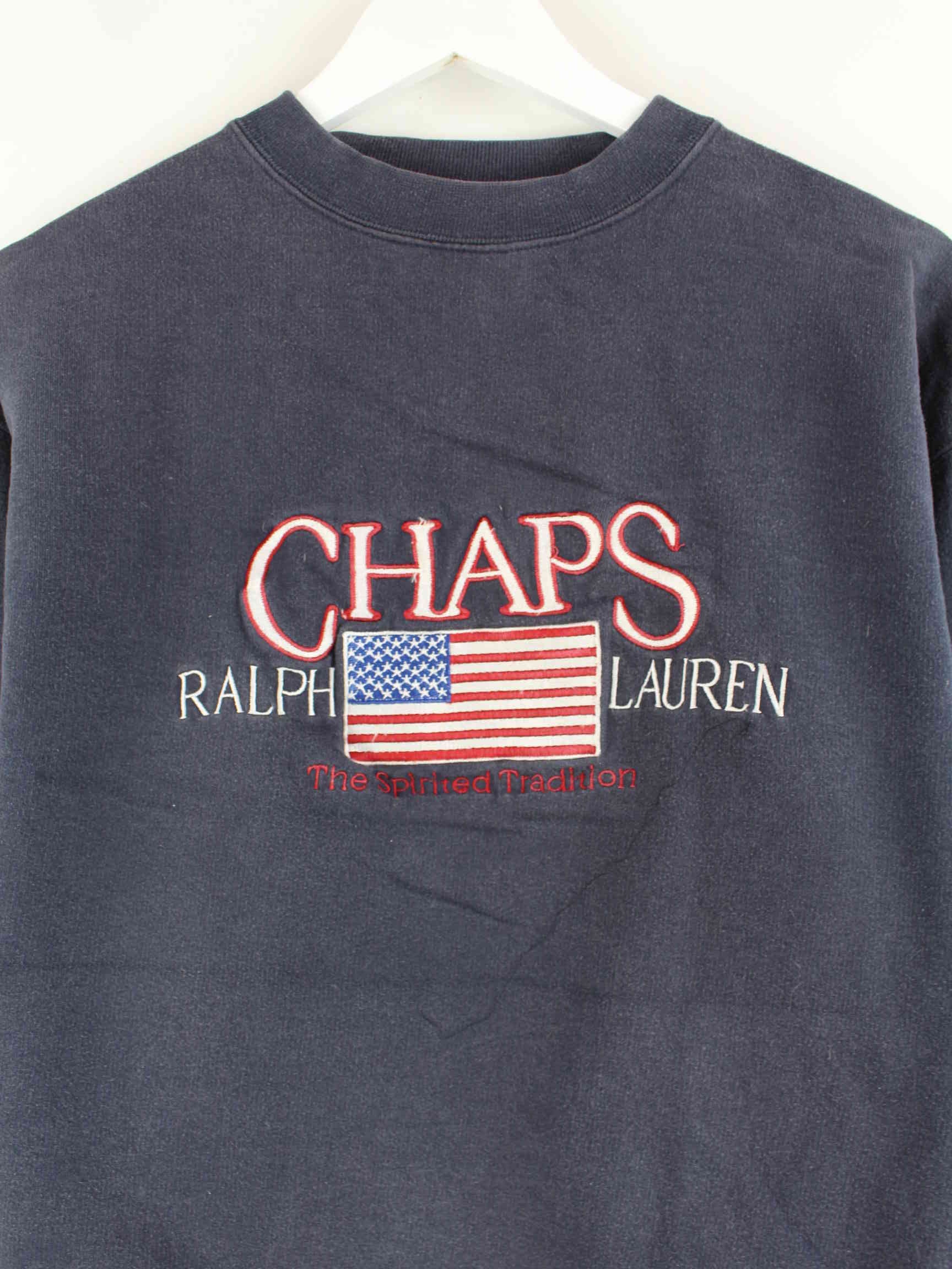 Sweater from Chaps by Ralph Lauren with embroidery in size M. It is made from a cotton blend and is available in blue.