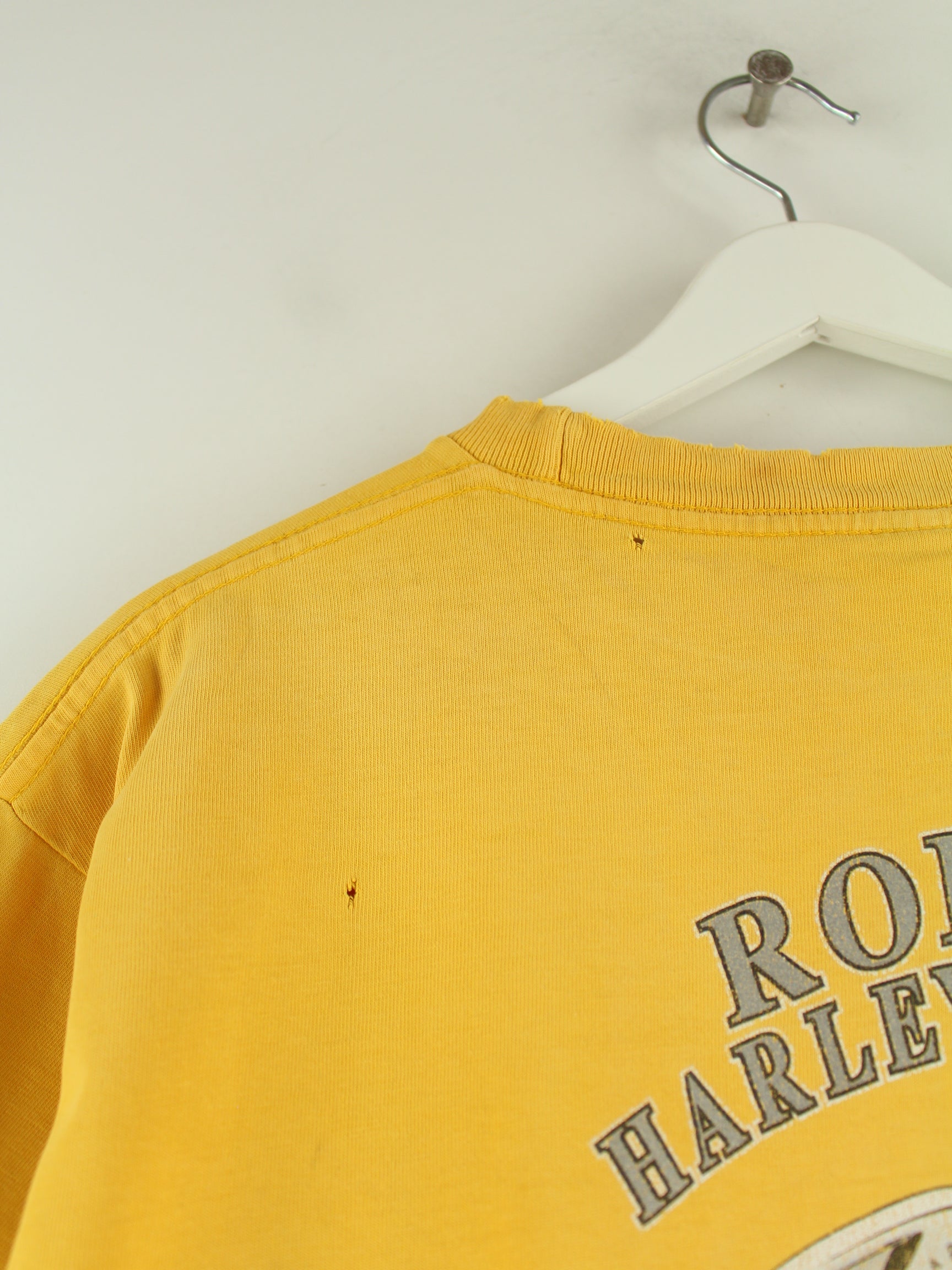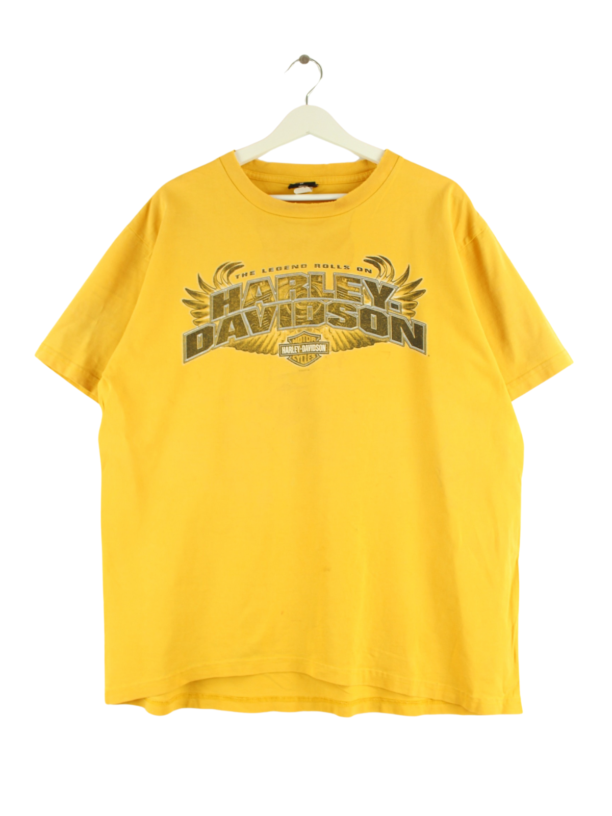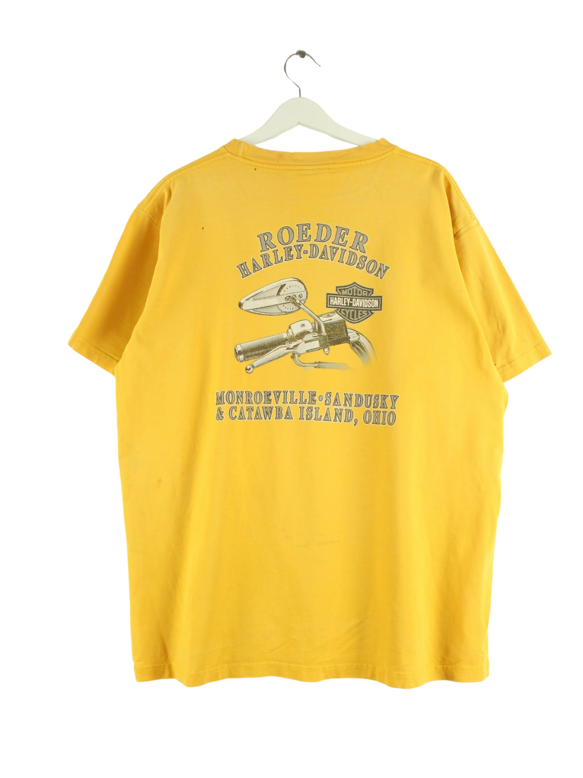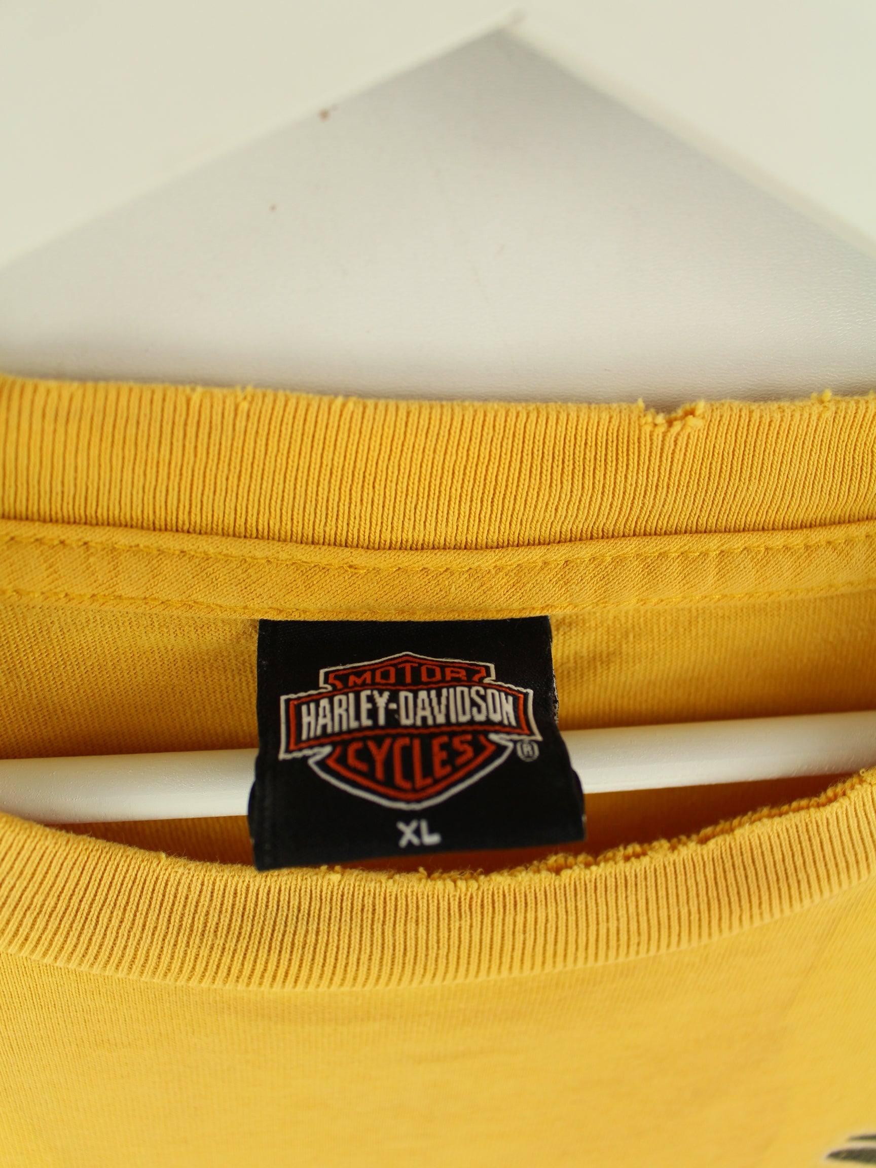 T-shirt from the Harley Davidson label in size XL from the early 2000s. It is made of cotton and is available from us in yellow. With a chic Ohio print.