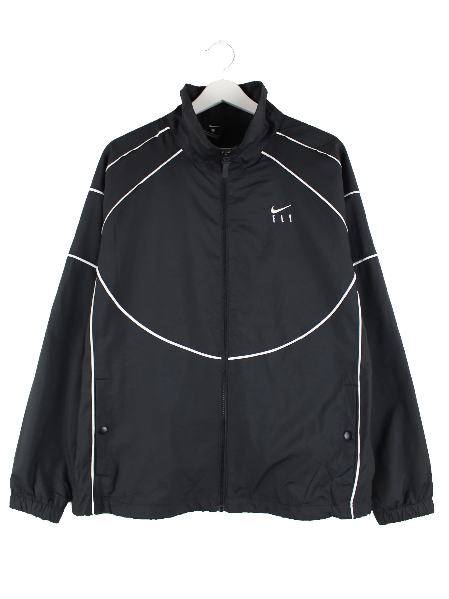 Trainingsjacke vom Label Nike in Größe L. Sie ist aus Synthetik gefertigt und in Schwarz zu haben.