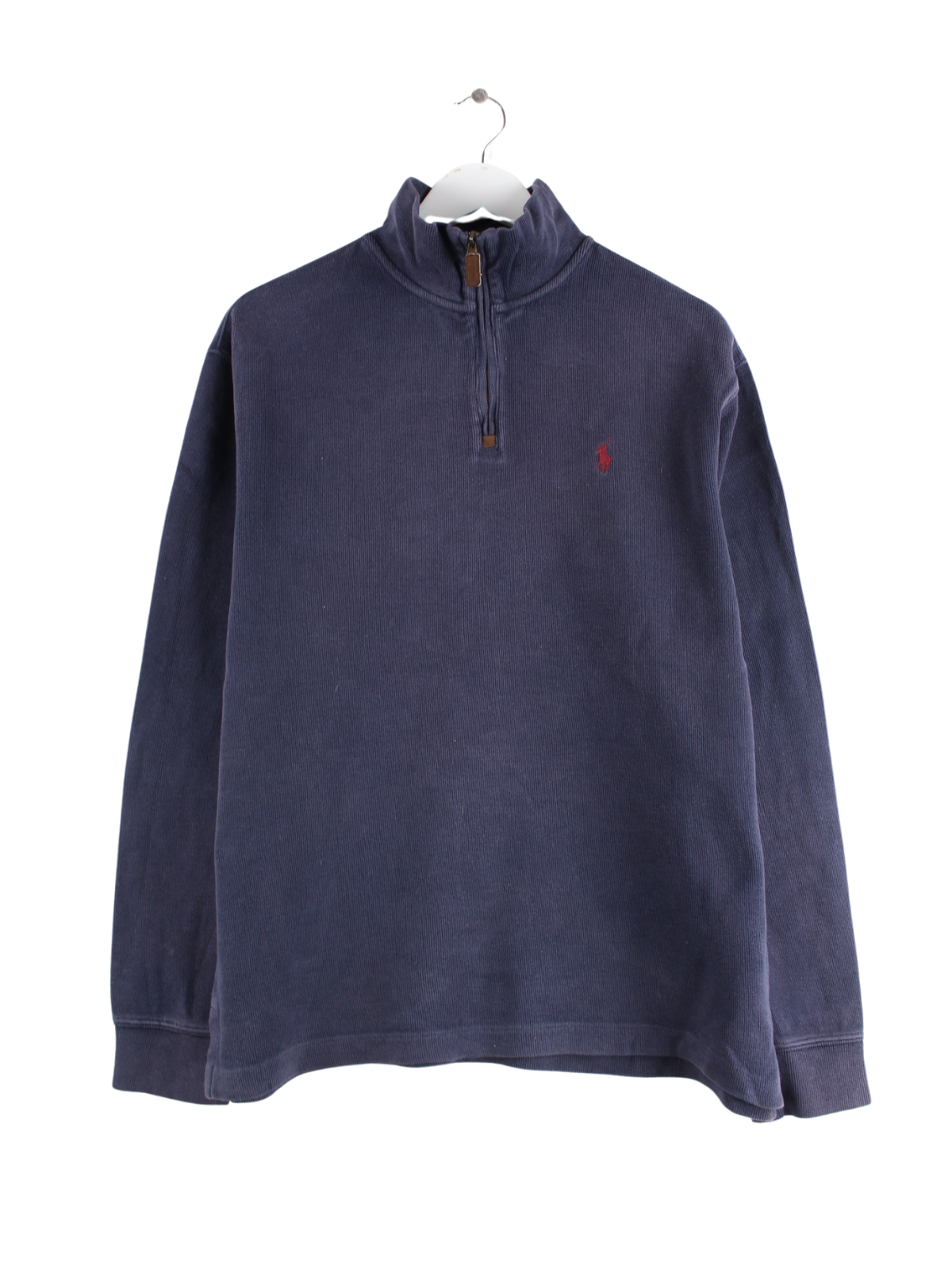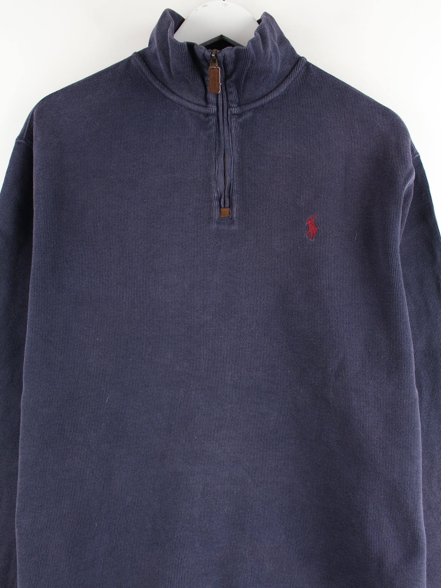 Blue half-zip sweater from Ralph Lauren in size M. It is made from a cotton blend and is in good condition.