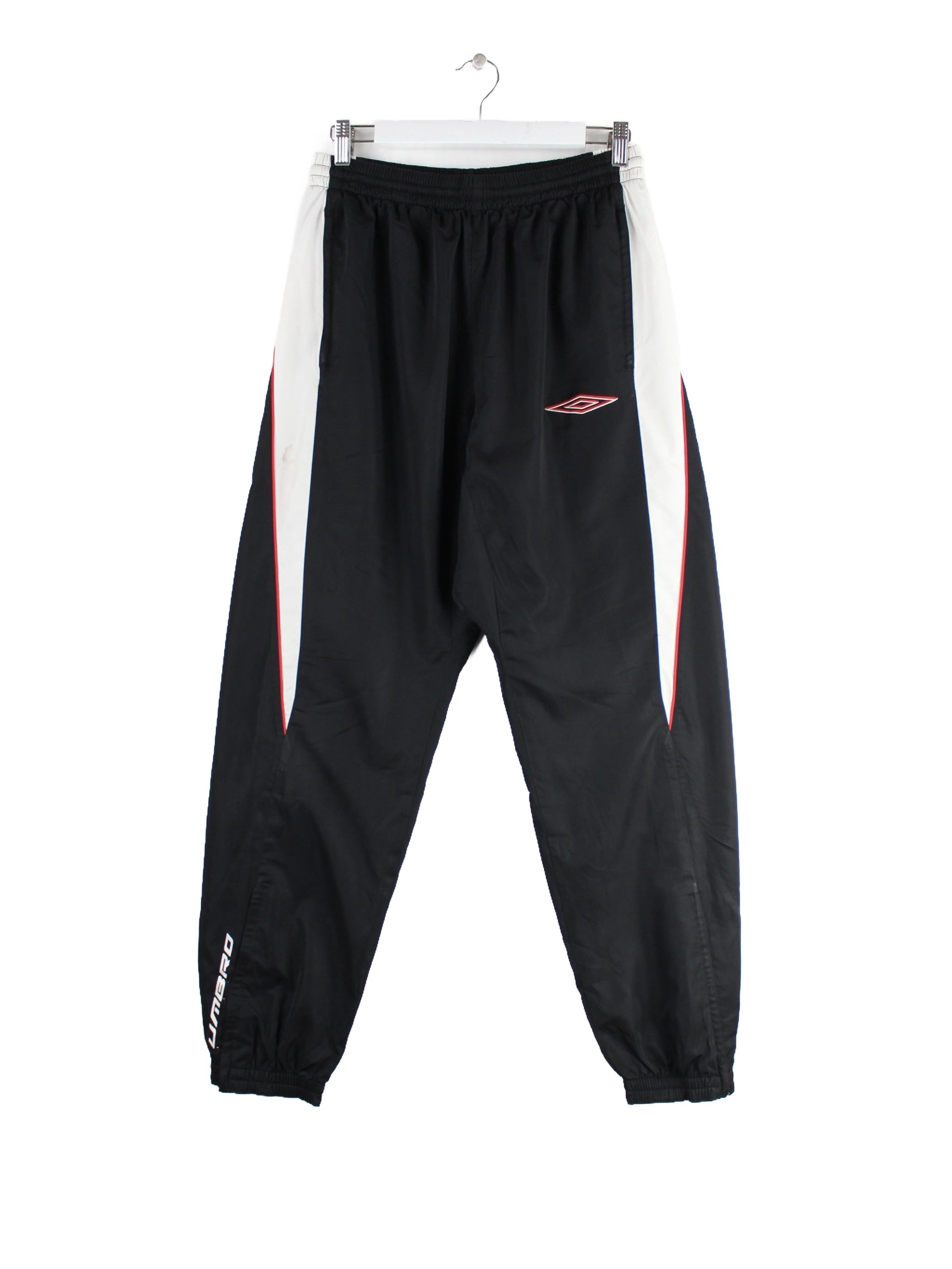 Schwarze Track Pants des Labels Umbro in Größe L. Sie sind aus Synthetik . Den Zustand würden wir als 'In Ordnung' bezeichnen (vergl. Bilder).
