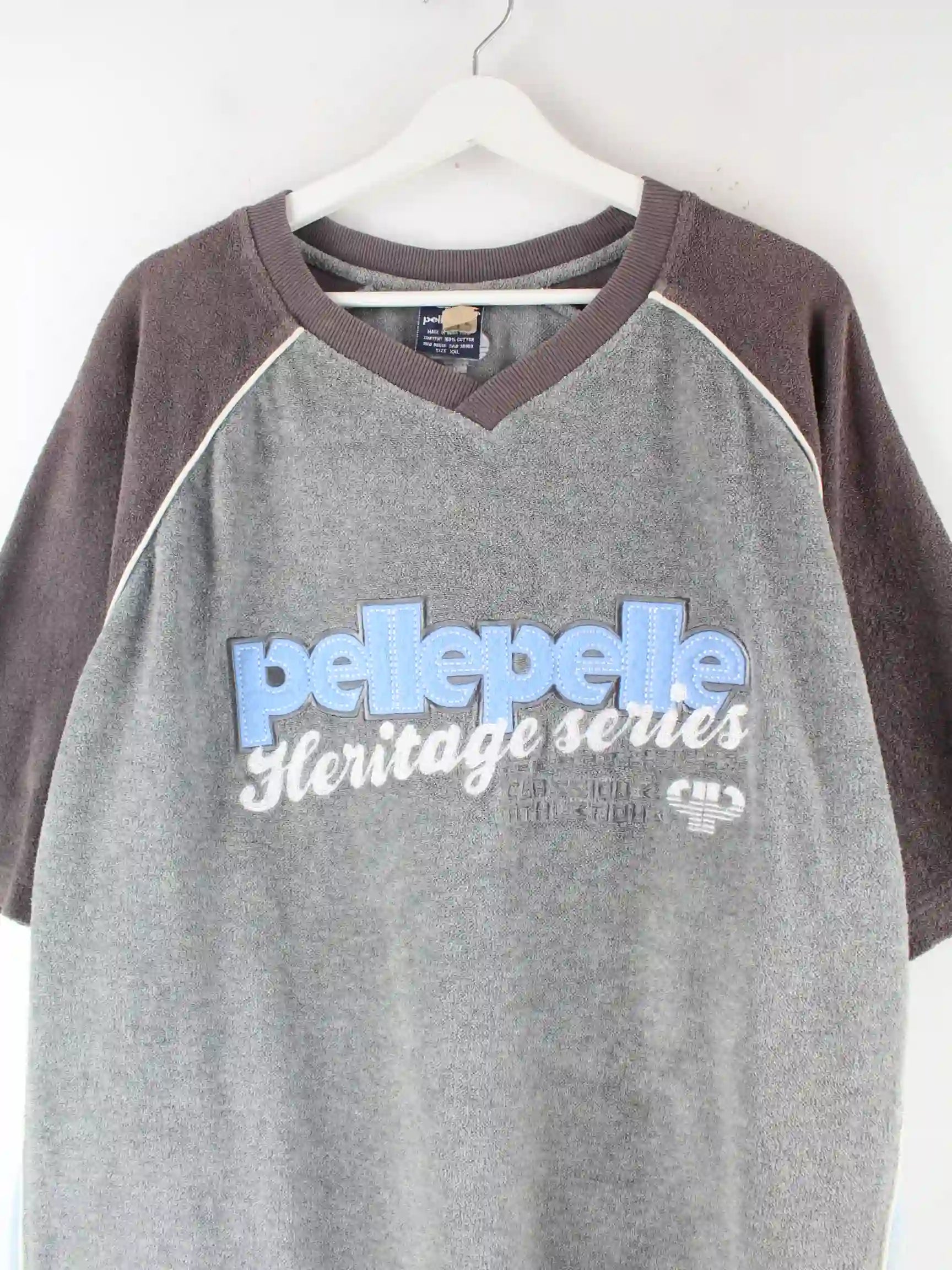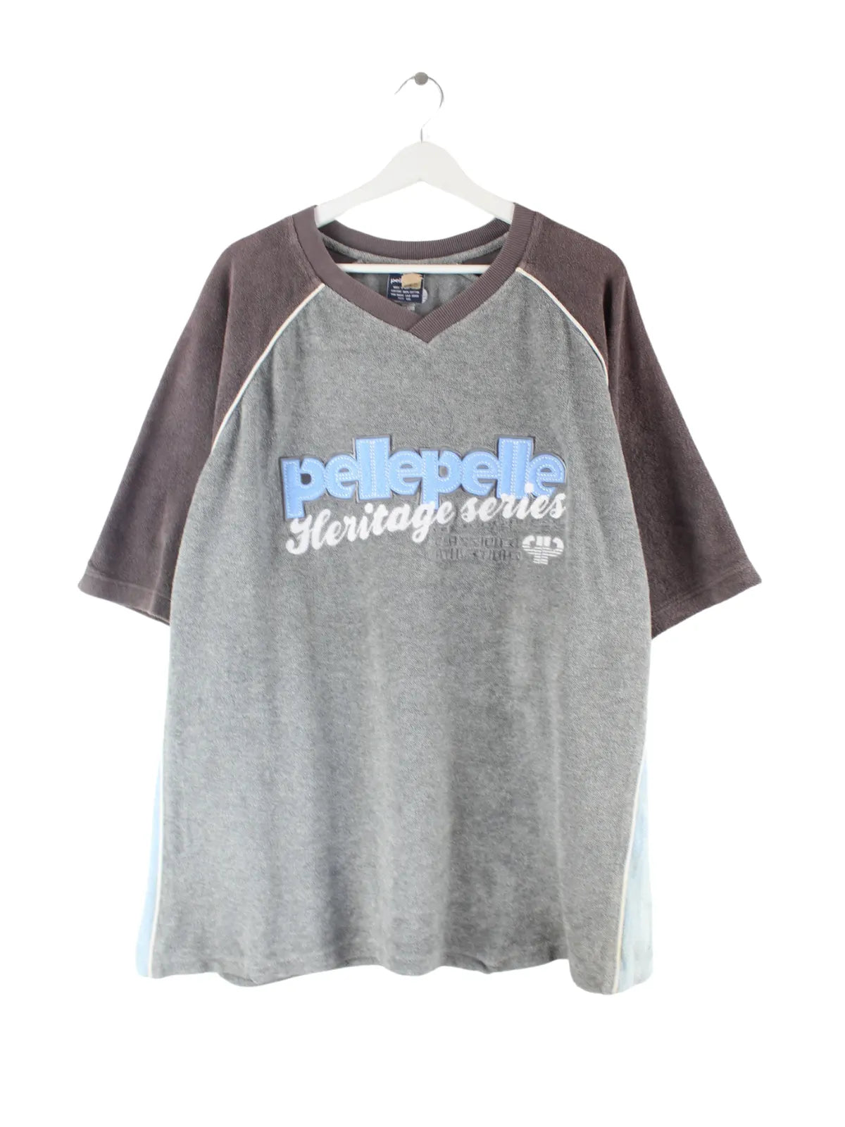 T-Shirt von Pelle Pelle mit Stickereien in Größe XXL aus Anfang der 2000'er. Es ist aus Baumwolle gefertigt und in Grau zu haben.