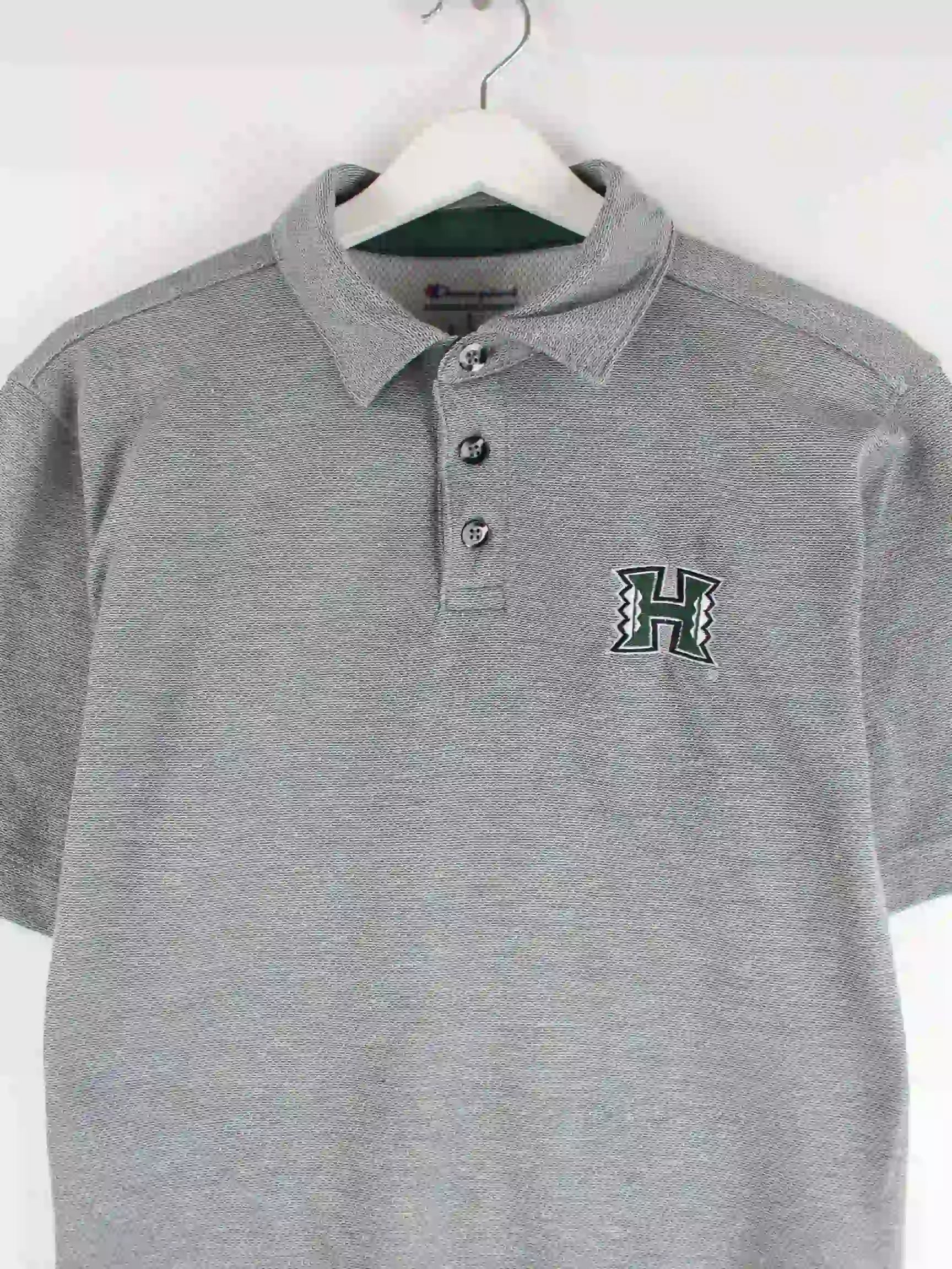 Poloshirt von Champion in Größe S. Es ist aus Synthetik gemacht und in Grau bei uns zu bekommen.