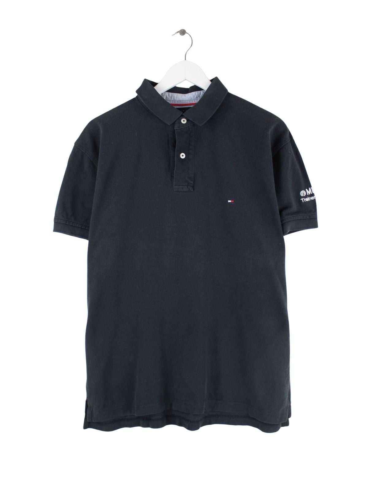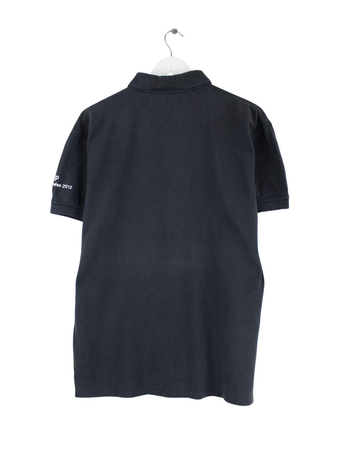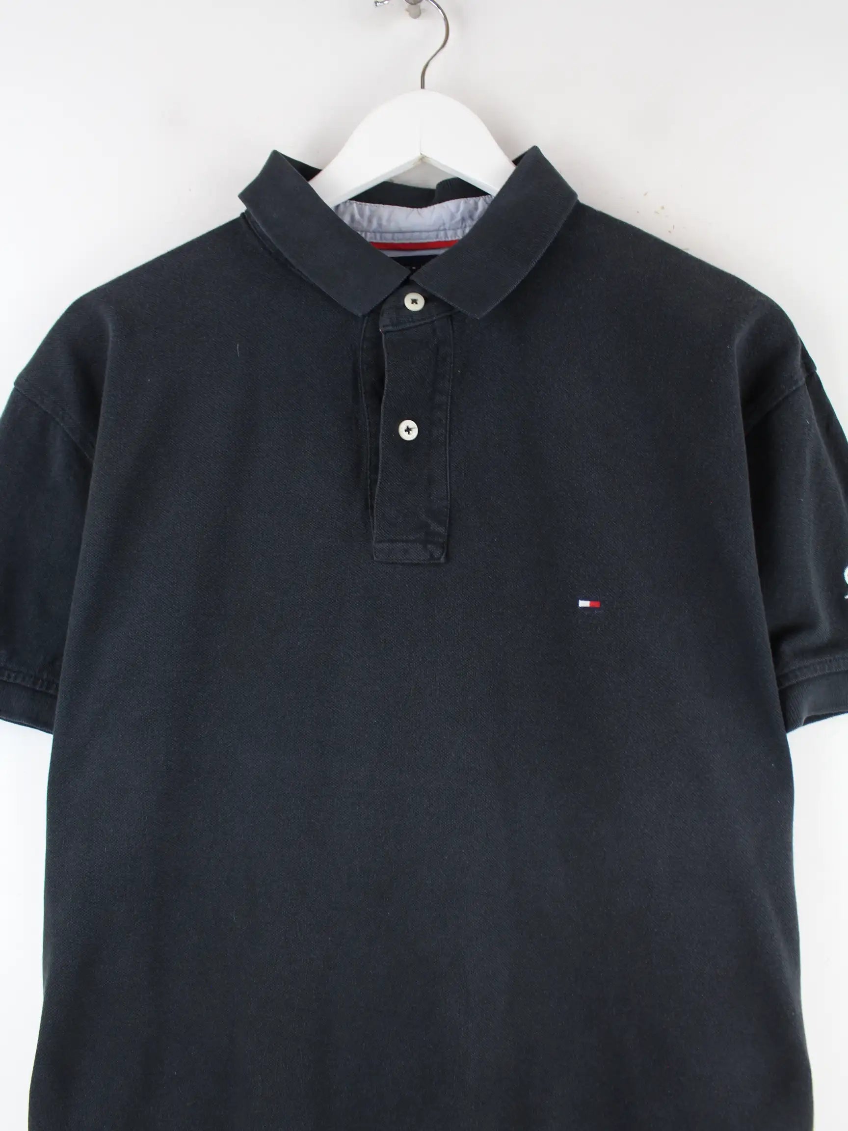 Schwarzes Poloshirt aus dem Hause Tommy Hilfiger in Größe L. Es ist aus Baumwolle und in gutem Zustand im Bestand.